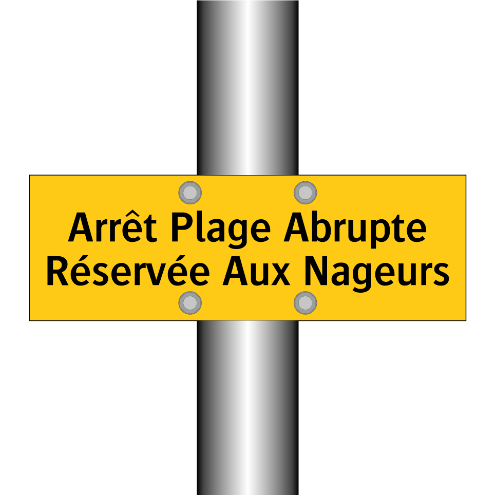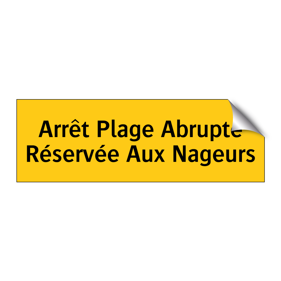 Panneau d'avertissement avec le texte : "Arrêt Plage Abrupte Réservée Aux Nageurs"