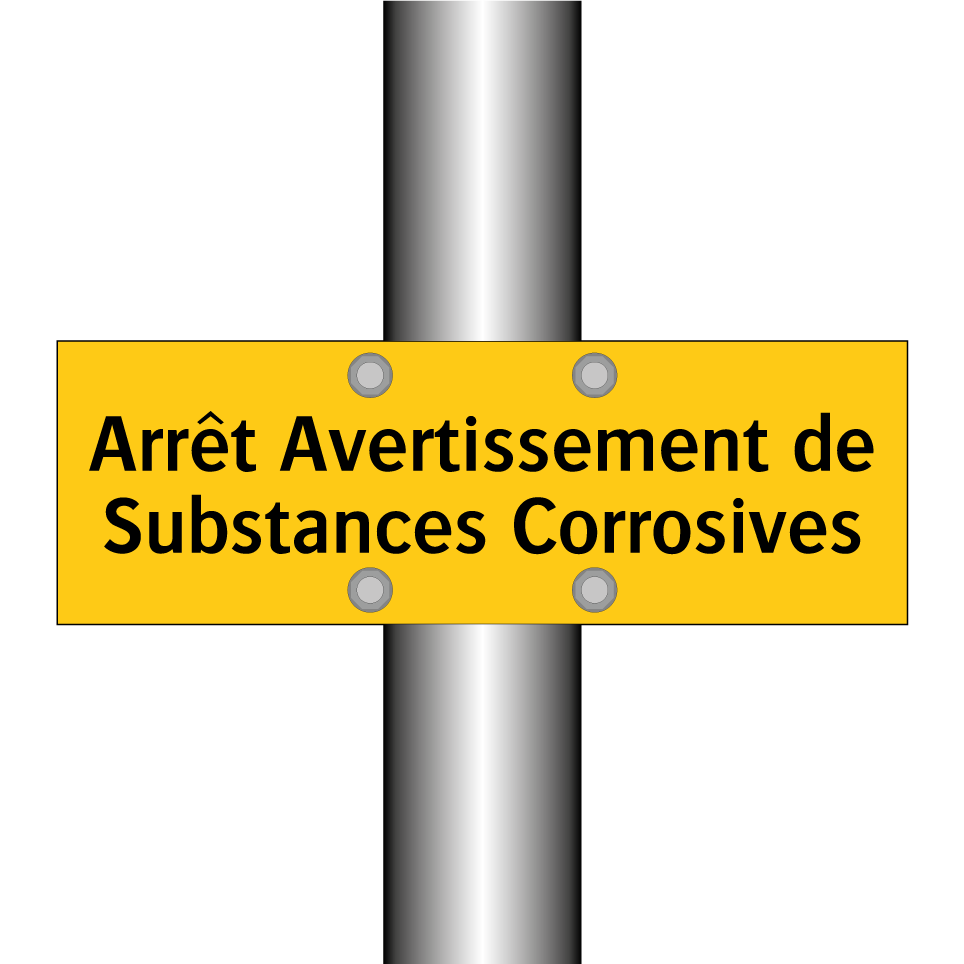 Panneau d'avertissement avec le texte : "Arrêt Avertissement de Substances Corrosives"