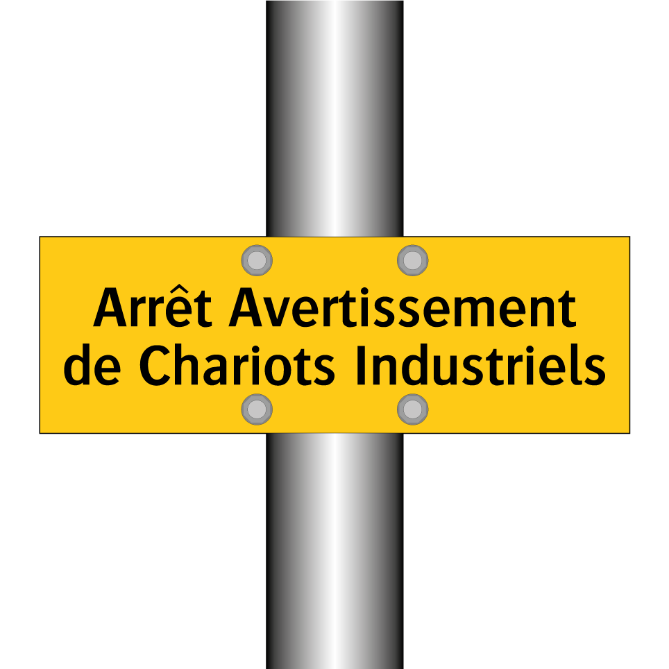 Panneau d'avertissement avec le texte : "Arrêt Avertissement de Chariots Industriels"