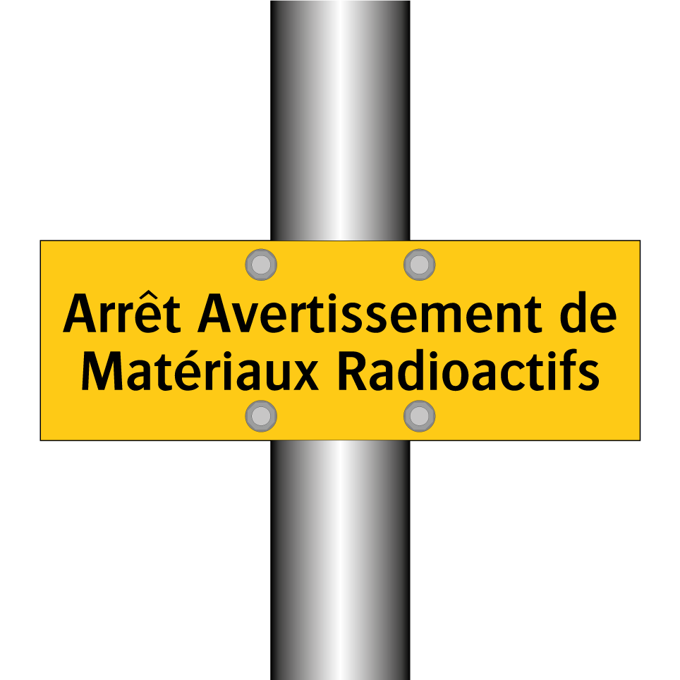 Panneau d'avertissement avec le texte : "Arrêt Avertissement de Matériaux Radioactifs"