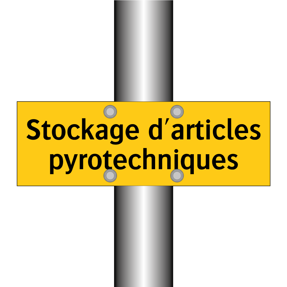 Panneau d'avertissement avec le texte : "Stockage d'articles pyrotechniques"