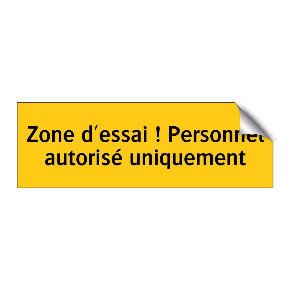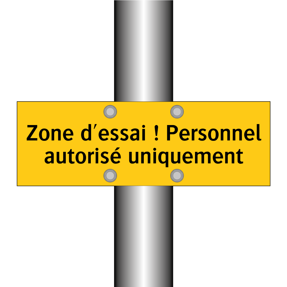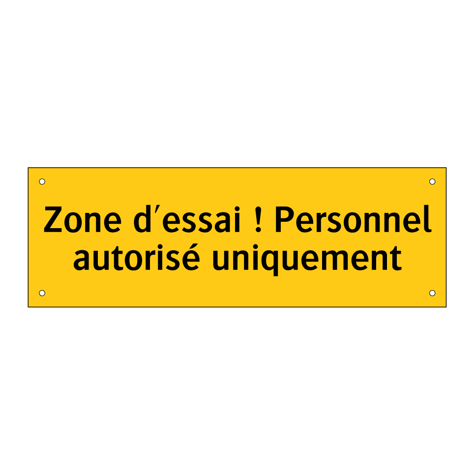 Panneau d'avertissement avec le texte : "Zone d'essai ! Personnel autorisé uniquement"