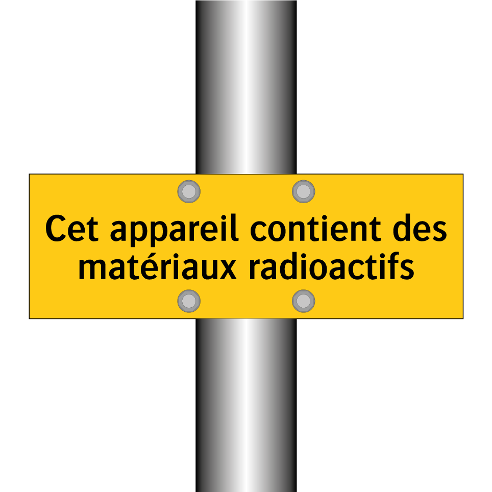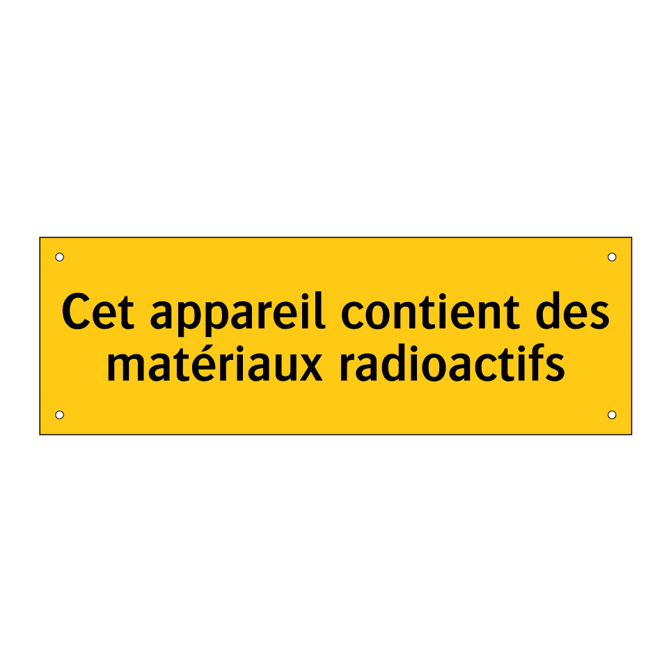 Panneau d'avertissement avec le texte : "Cet appareil contient des matériaux radioactifs"