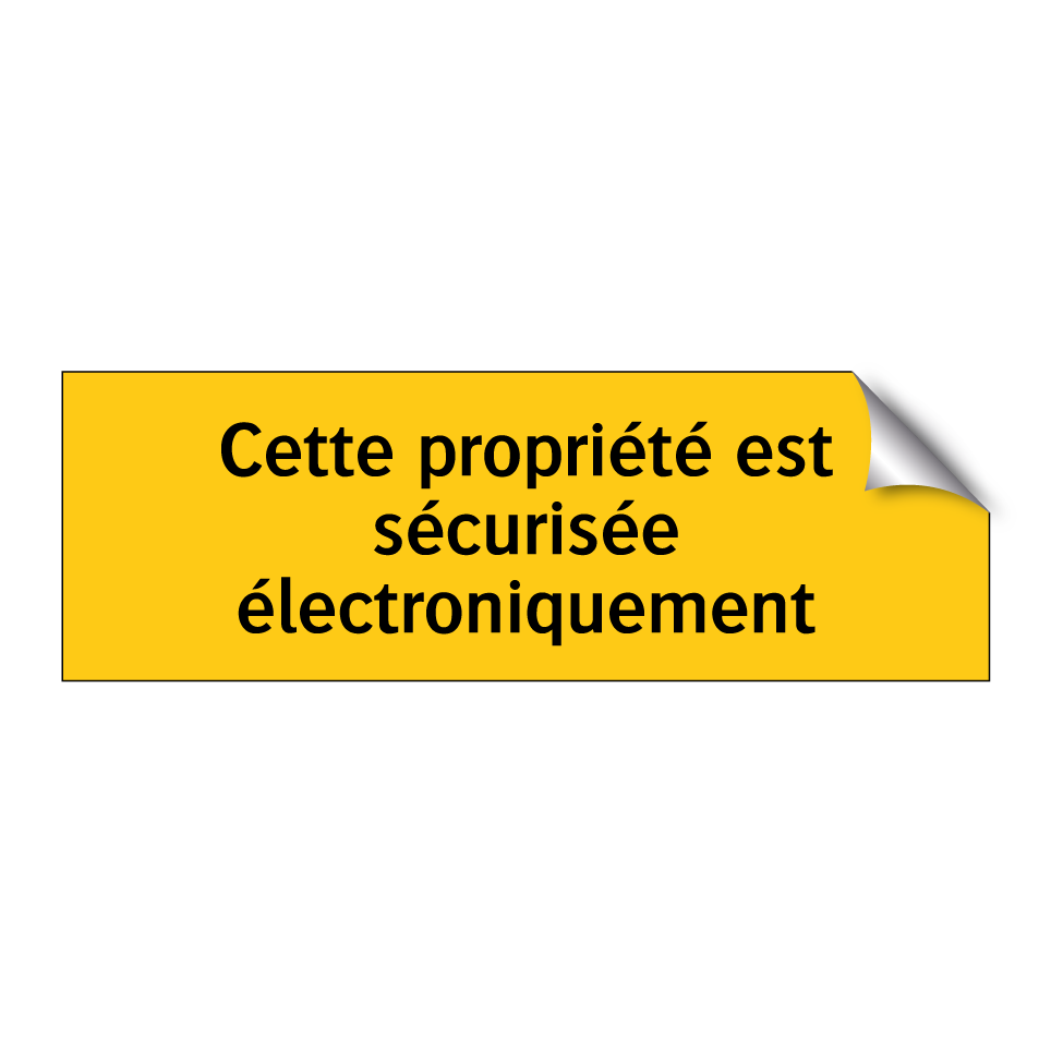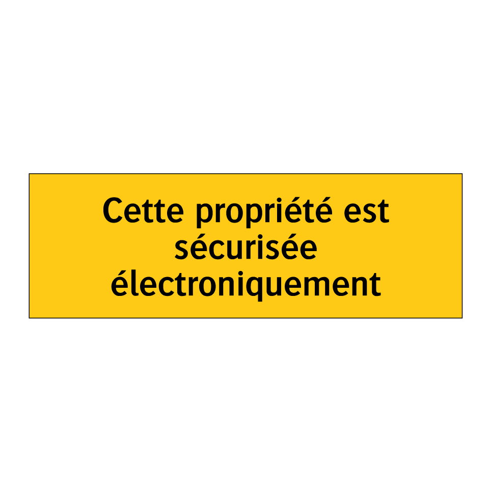 Panneau d'avertissement avec le texte : "Cette propriété est sécurisée électroniquement"