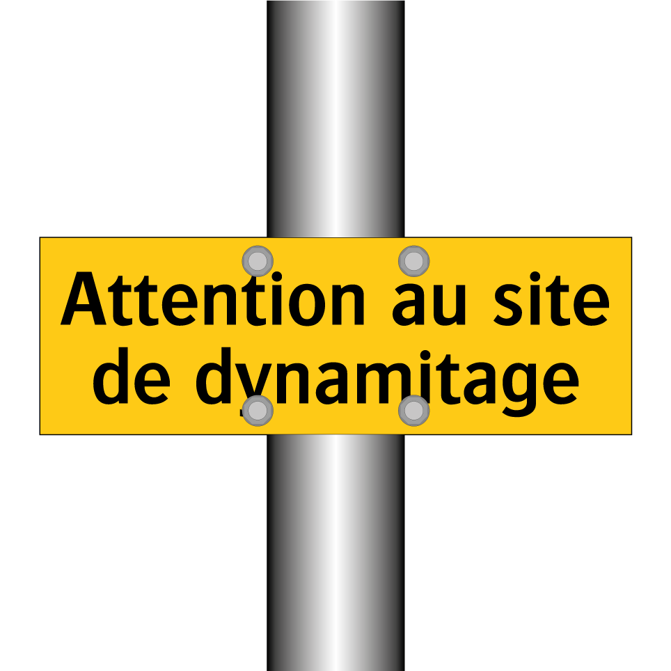Panneau d'avertissement avec le texte : "Attention au site de dynamitage"