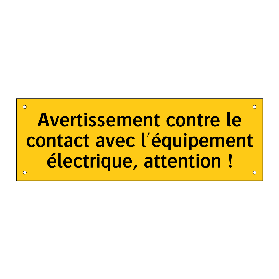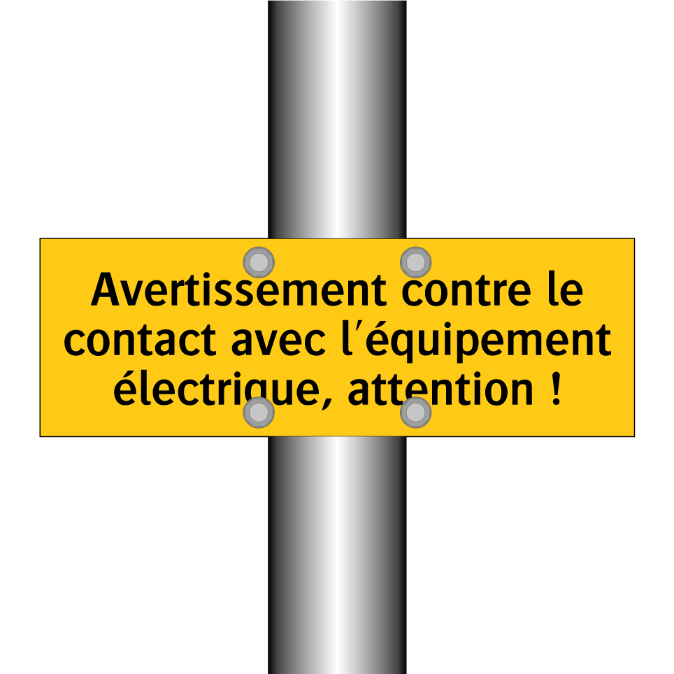 Panneau d'avertissement avec le texte : "Avertissement contre le contact avec l'équipement électrique, attention !"