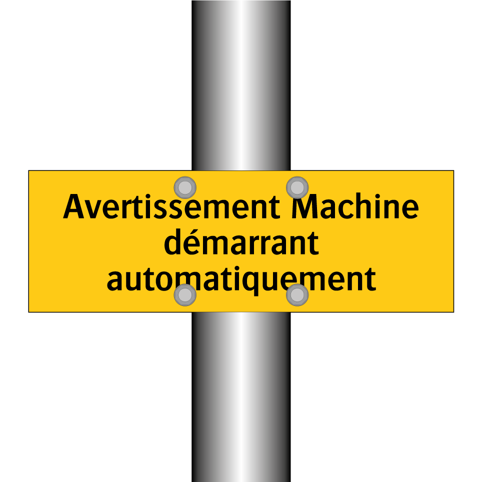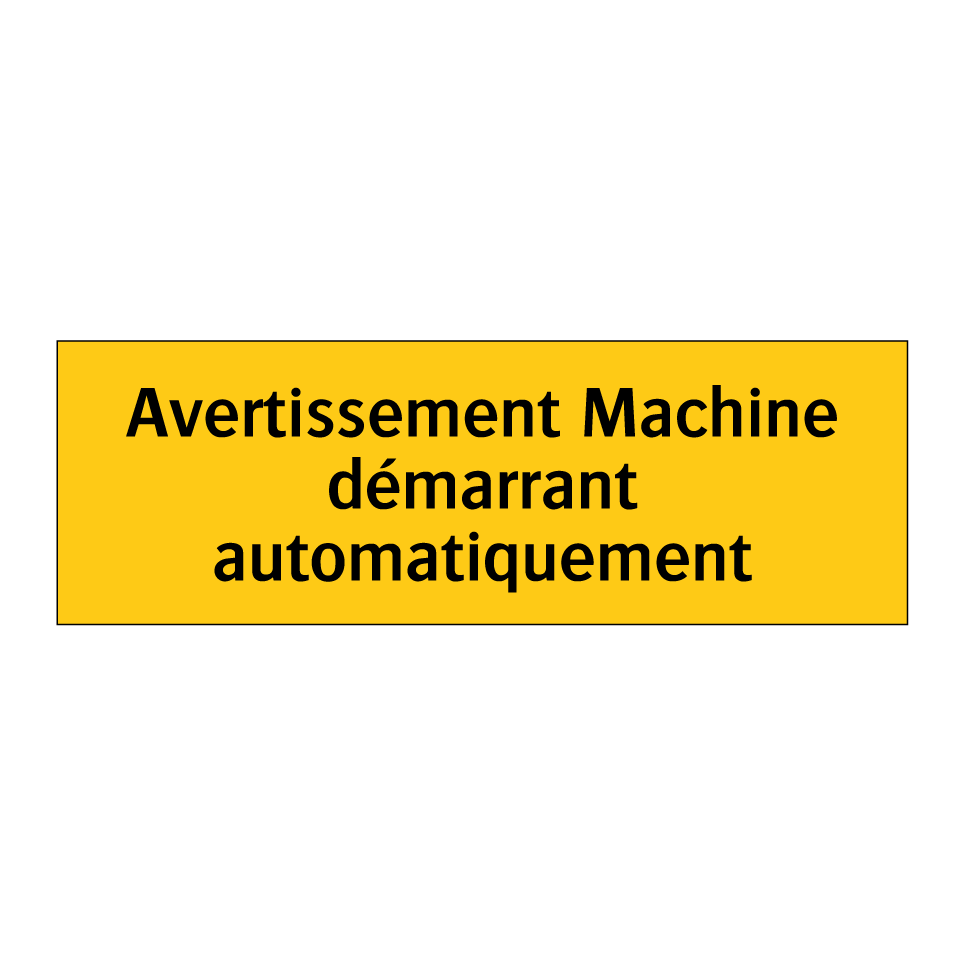 Panneau d'avertissement avec le texte : "Avertissement Machine démarrant automatiquement"