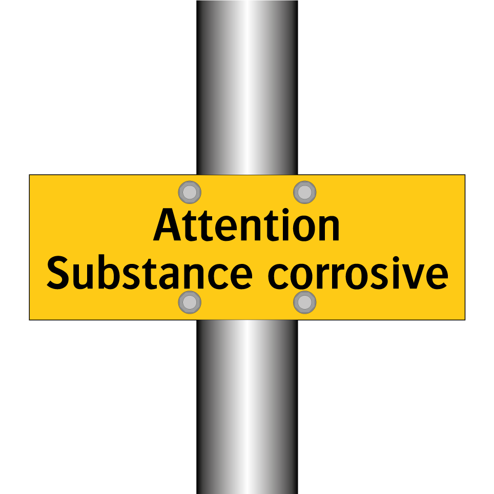 Panneau d'avertissement avec le texte : "Attention Substance corrosive"
