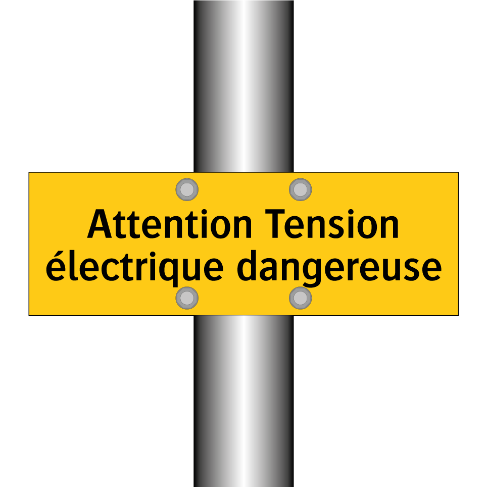 Panneau d'avertissement avec le texte : "Attention Tension électrique dangereuse"