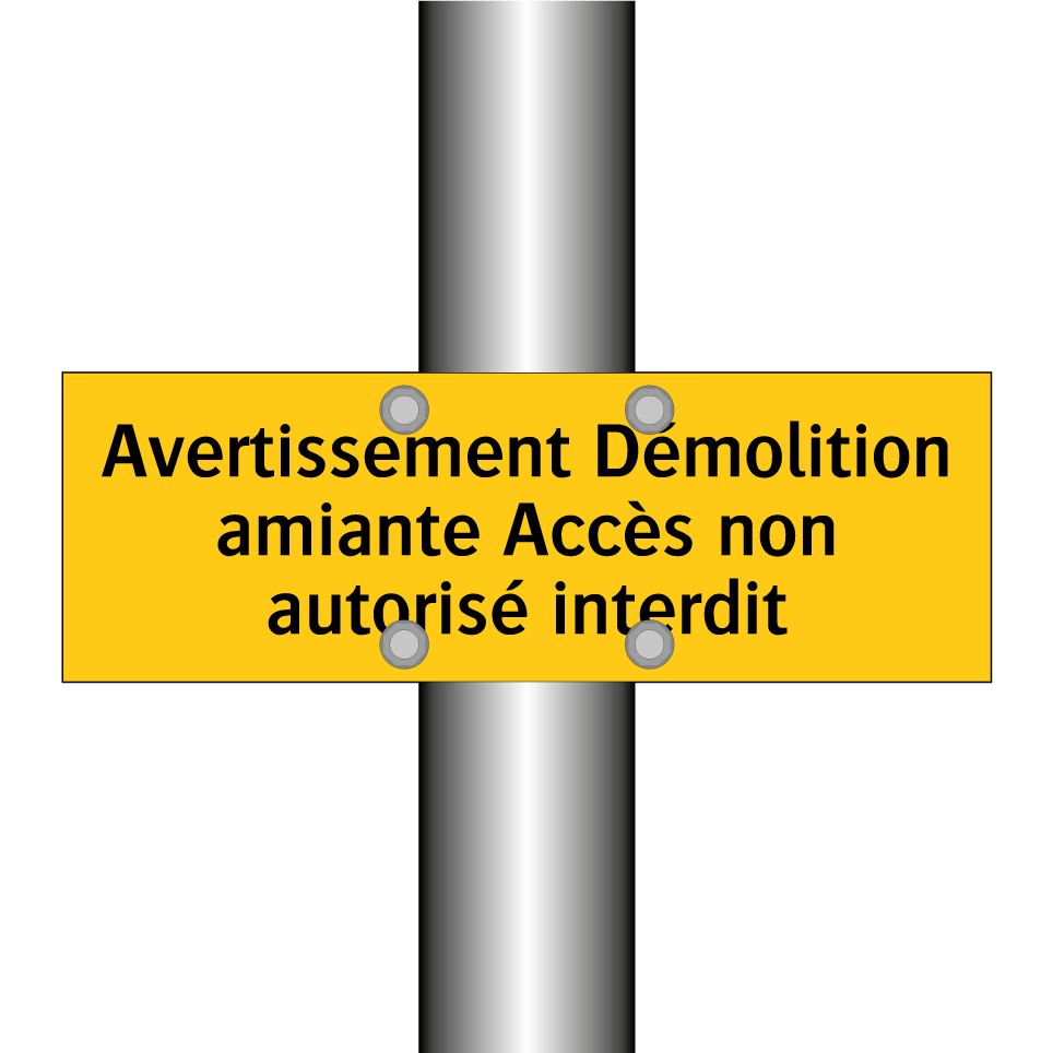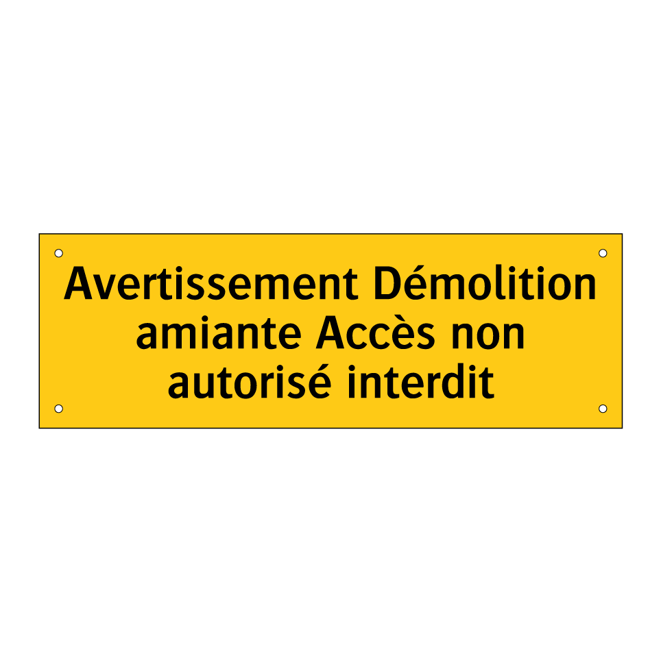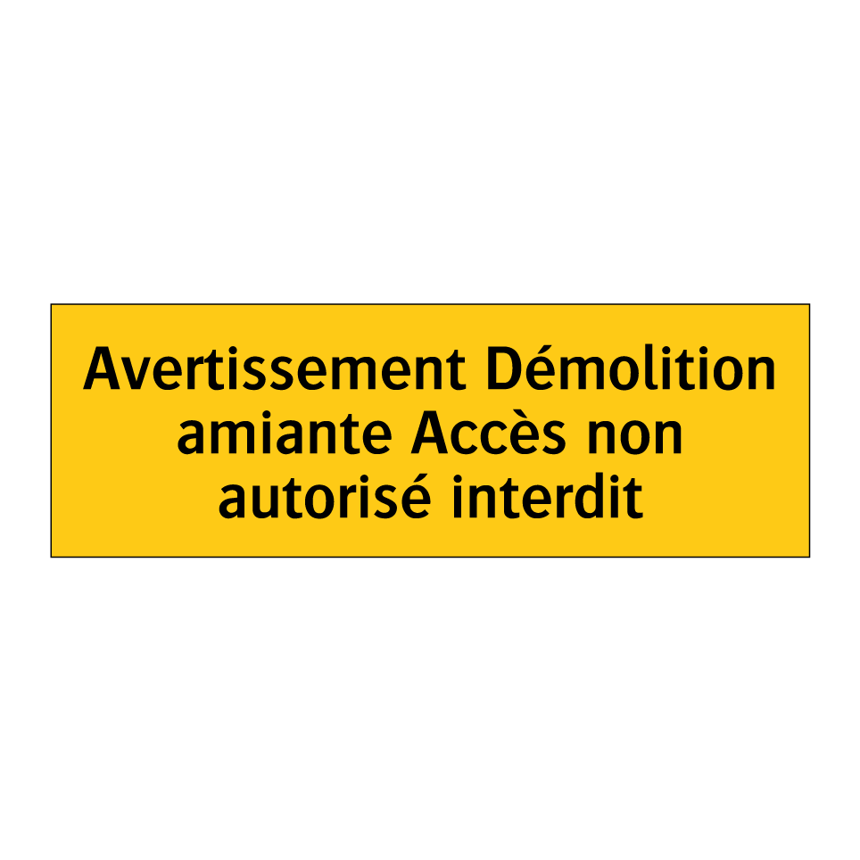 Panneau d'avertissement avec le texte : "Avertissement Démolition amiante Accès non autorisé interdit"