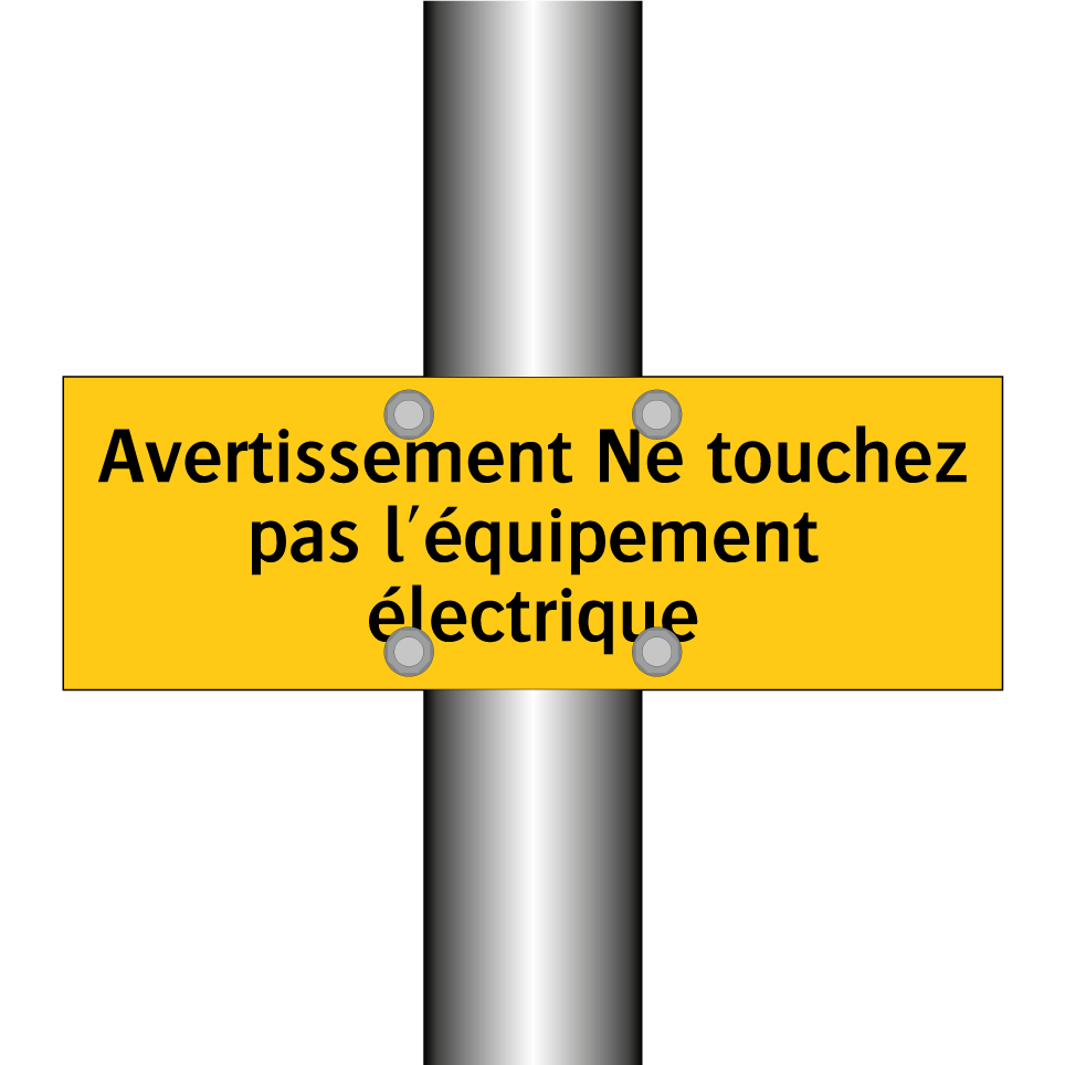 Panneau d'avertissement avec le texte : "Avertissement Ne touchez pas l'équipement électrique"