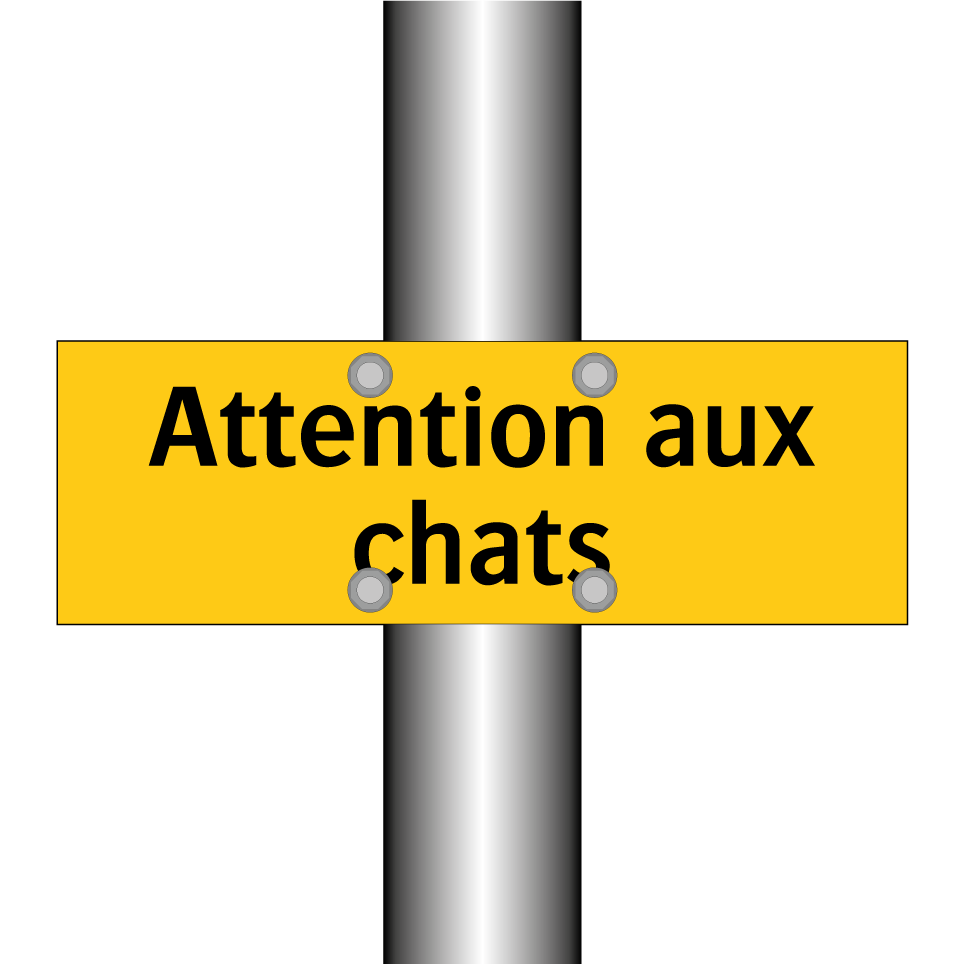 Panneau d'avertissement avec le texte : "Attention aux chats"