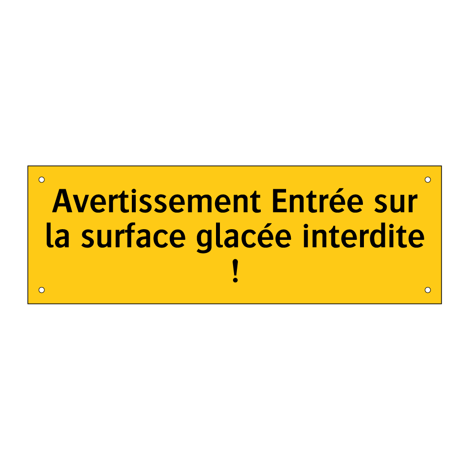Panneau d'avertissement avec le texte : "Avertissement Entrée sur la surface glacée interdite !"