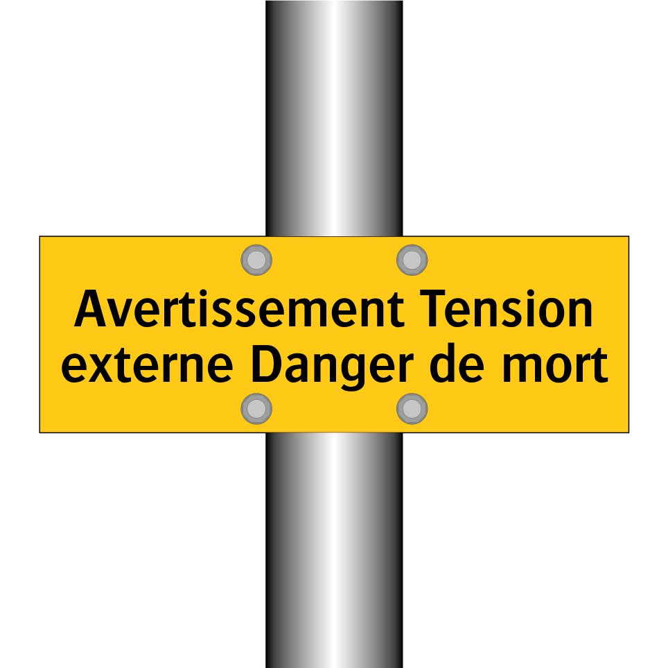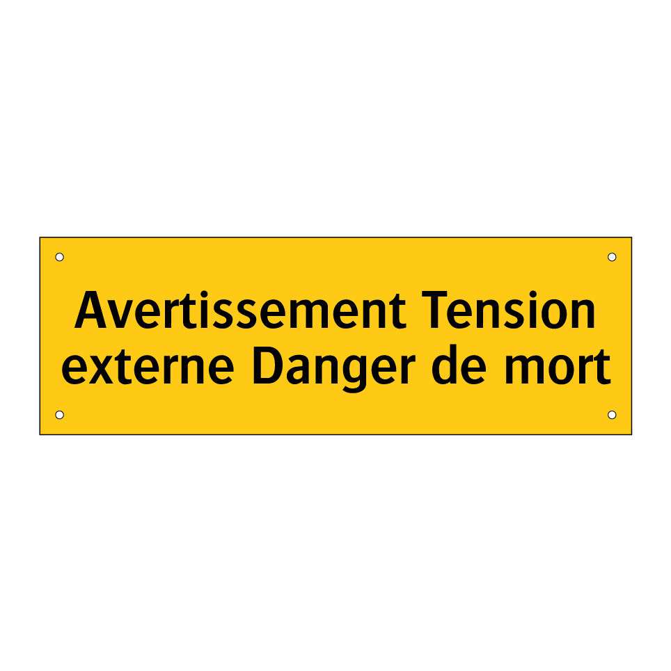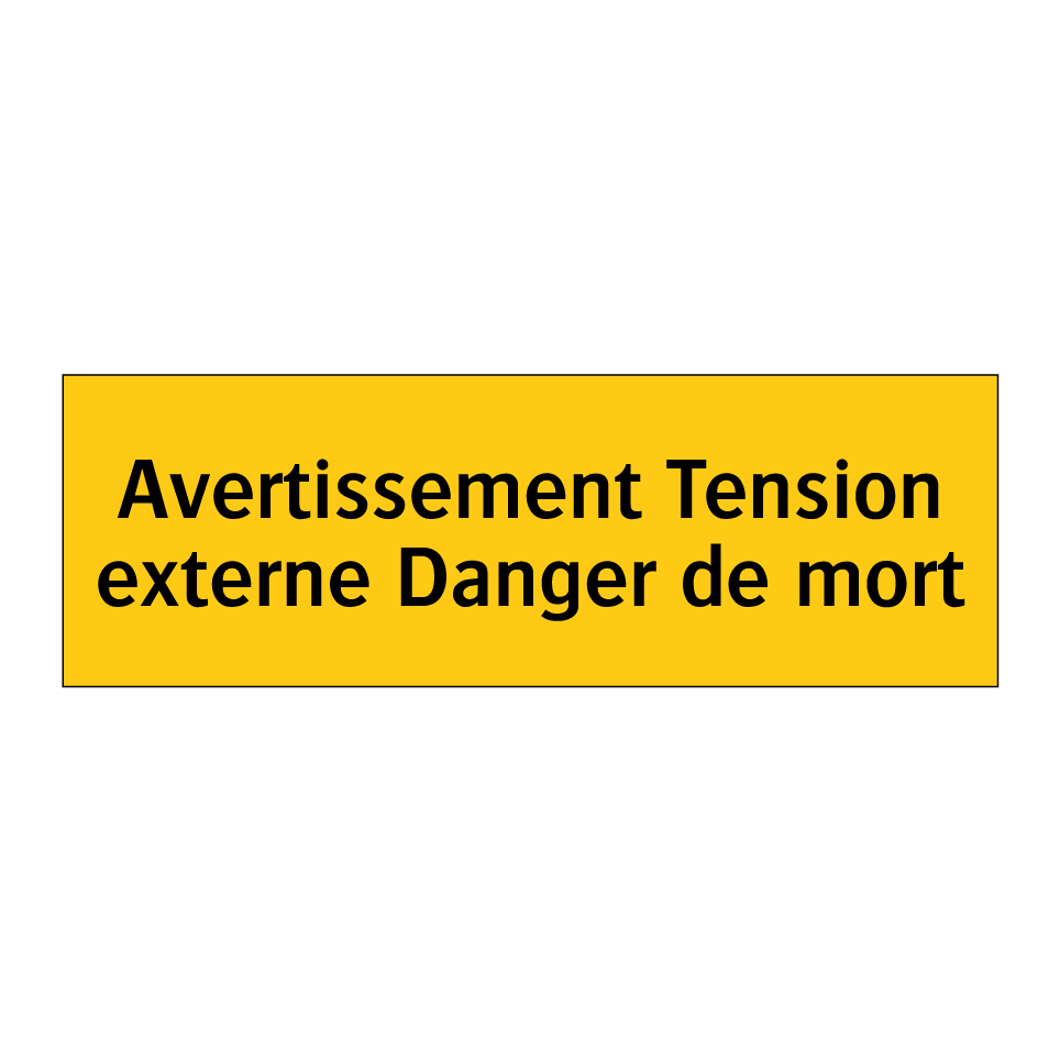 Panneau d'avertissement avec le texte : "Avertissement Tension externe Danger de mort"