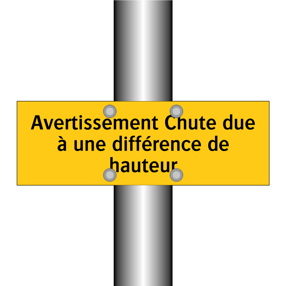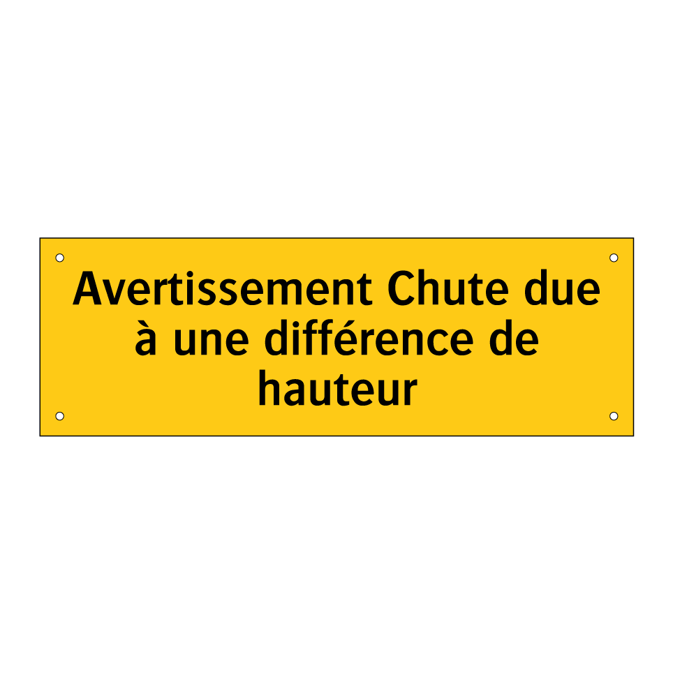 Panneau d'avertissement avec le texte : "Avertissement Chute due à une différence de hauteur"
