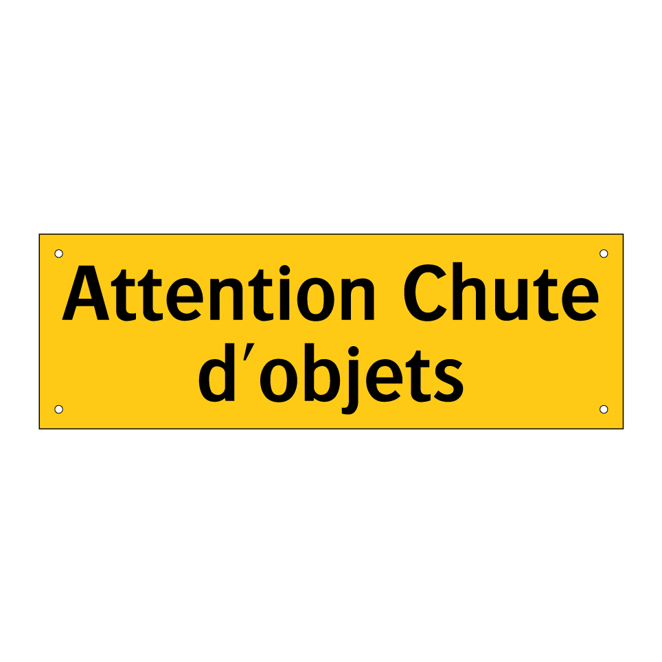 Panneau d'avertissement avec le texte : "Attention Chute d'objets"