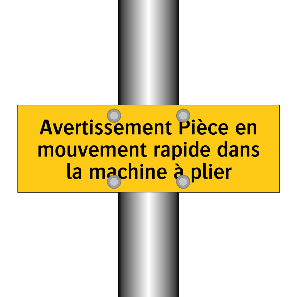 Panneau d'avertissement avec le texte : "Avertissement Pièce en mouvement rapide dans la machine à plier"