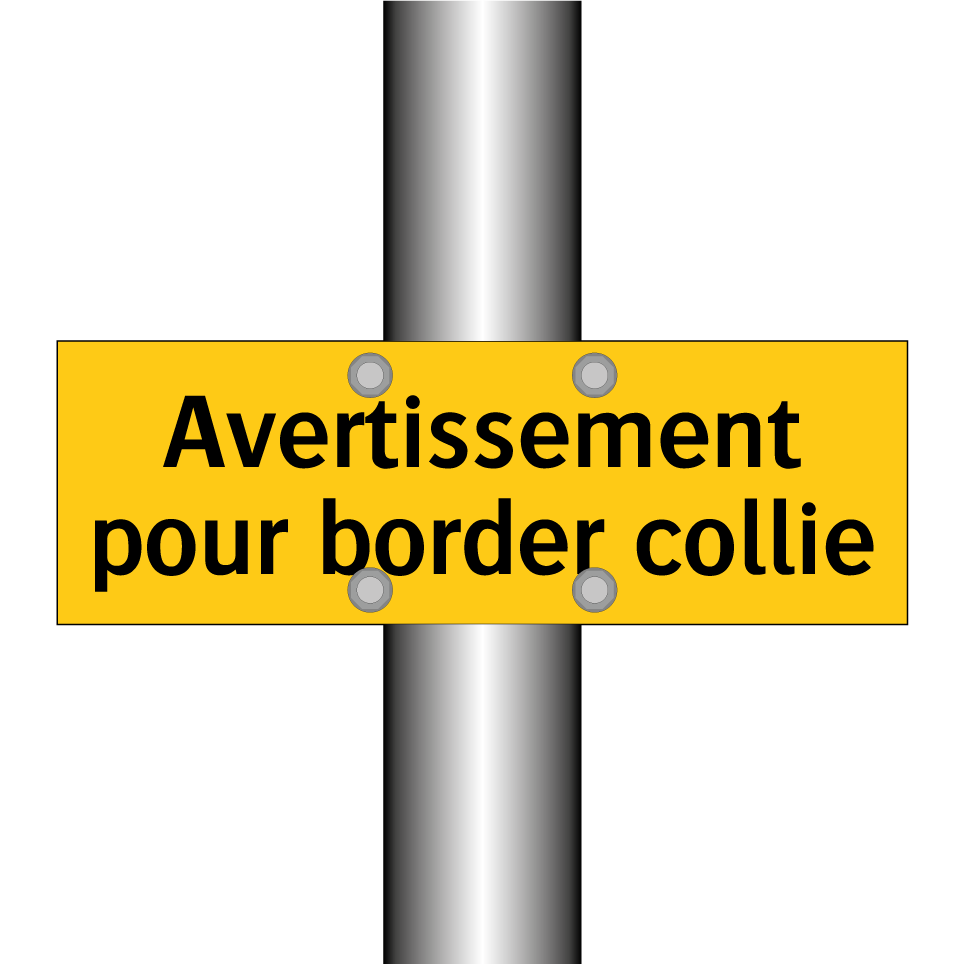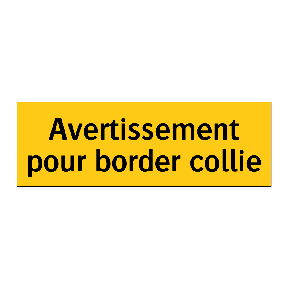 Panneau d'avertissement avec le texte : "Avertissement pour border collie"