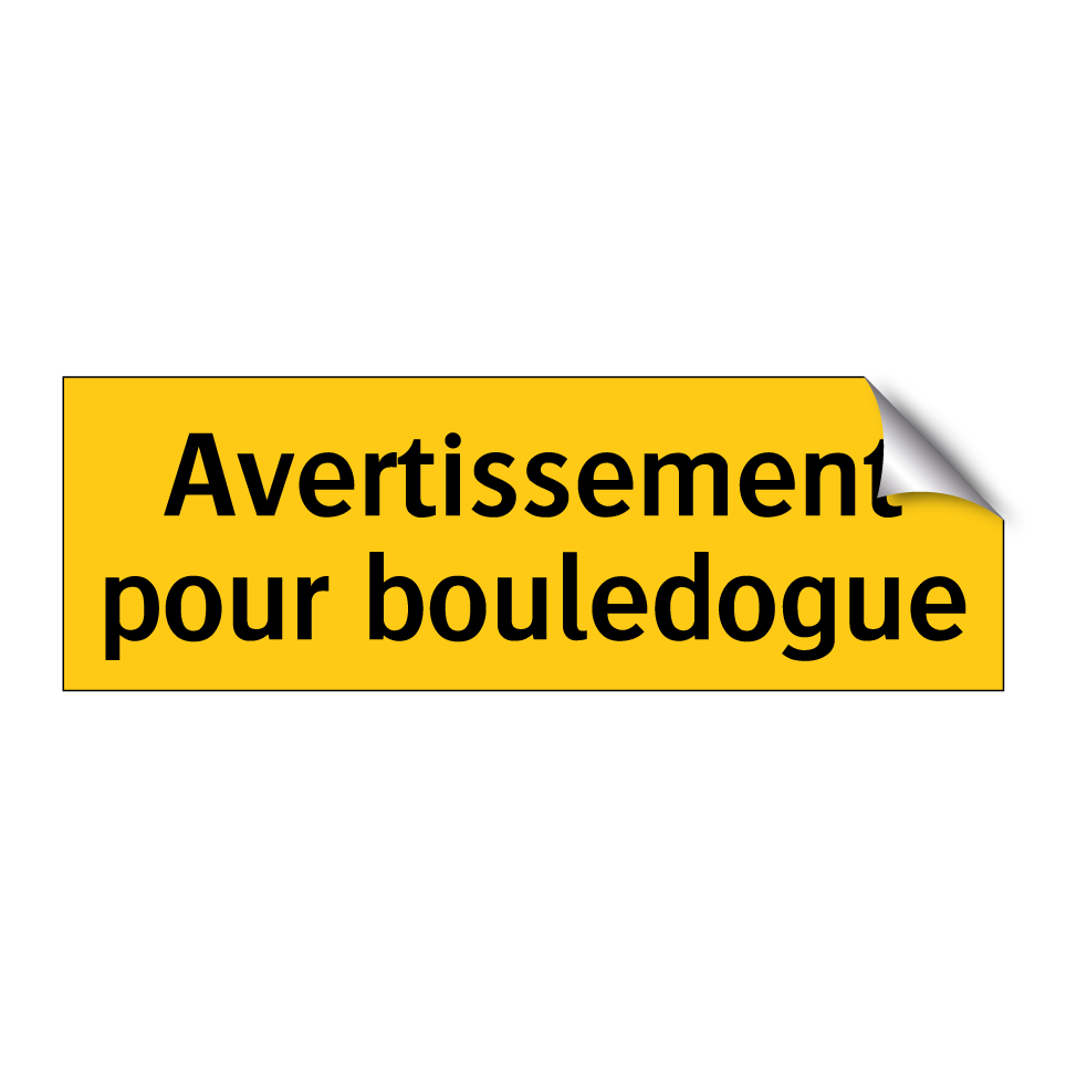 Panneau d'avertissement avec le texte : "Avertissement pour bouledogue"
