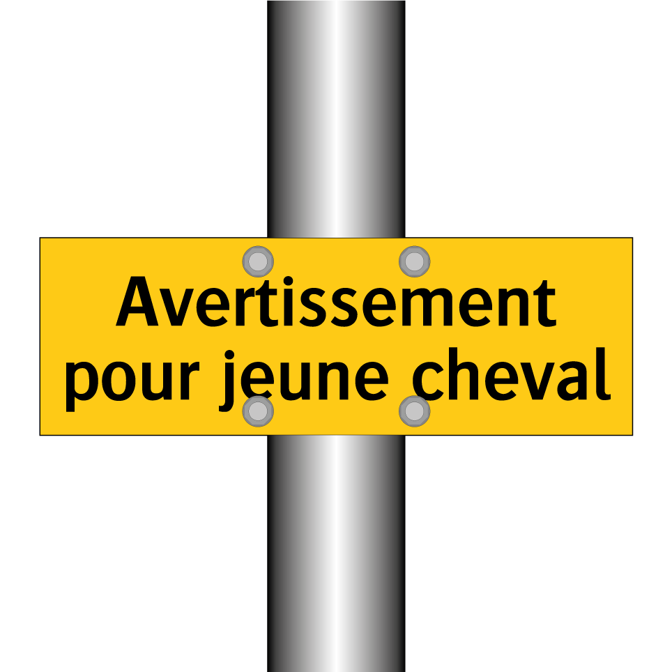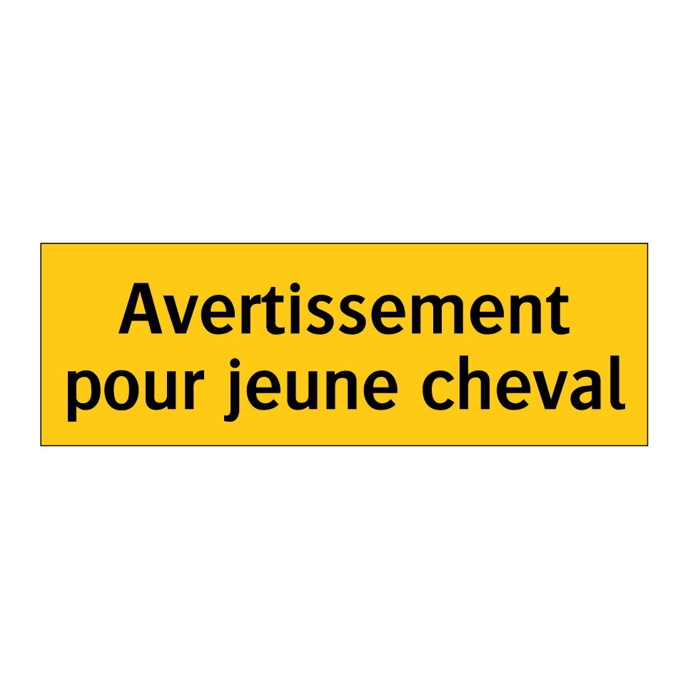 Panneau d'avertissement avec le texte : "Avertissement pour jeune cheval"