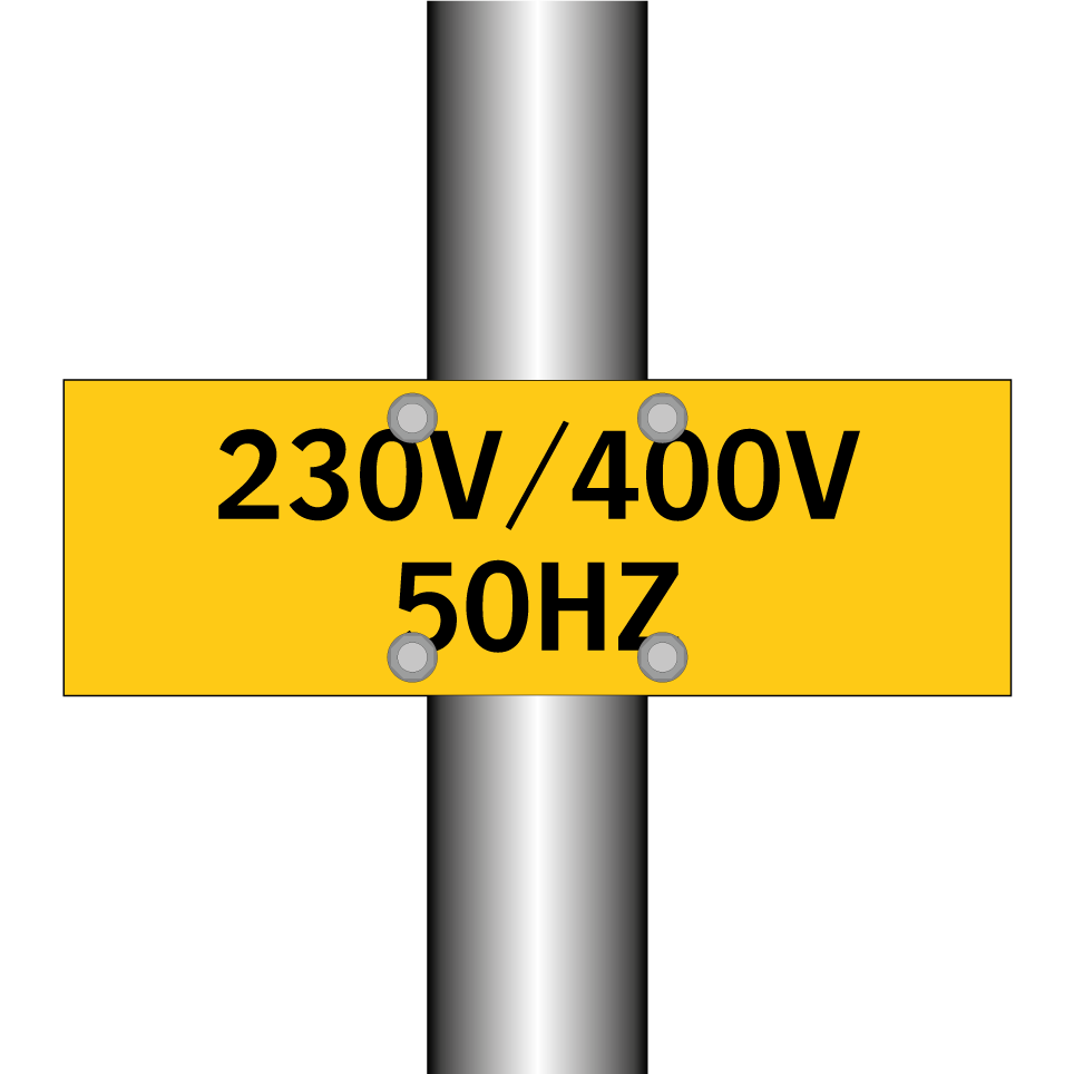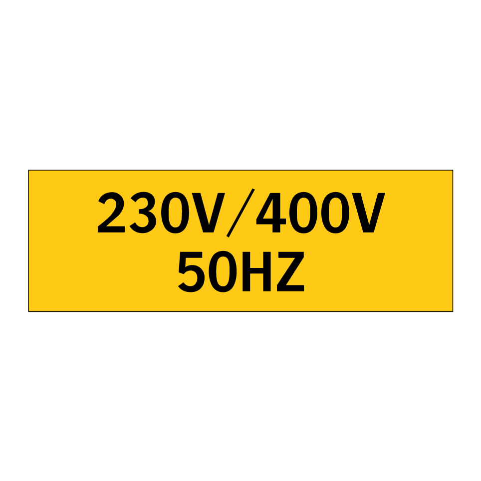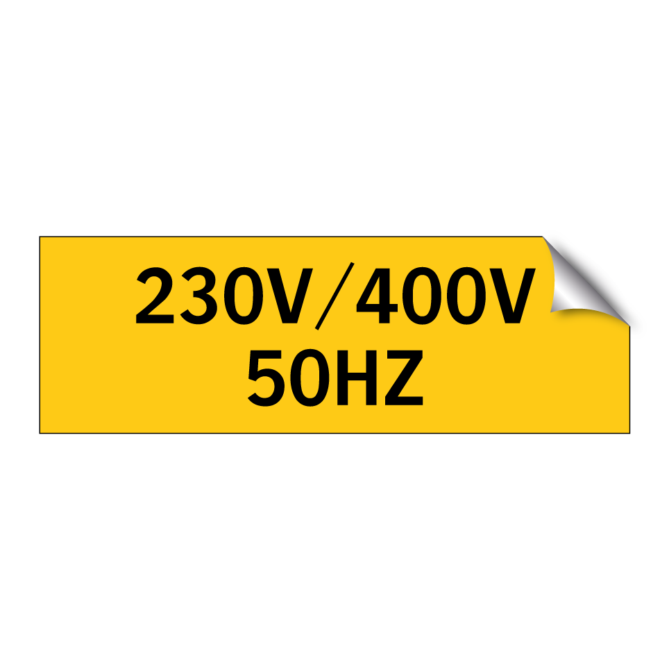 Panneau d'avertissement avec le texte : "230V/400V 50HZ"