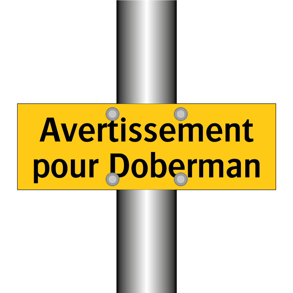 Panneau d'avertissement avec le texte : "Avertissement pour Doberman"