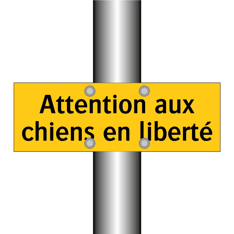 Panneau d'avertissement avec le texte : "Attention aux chiens en liberté"