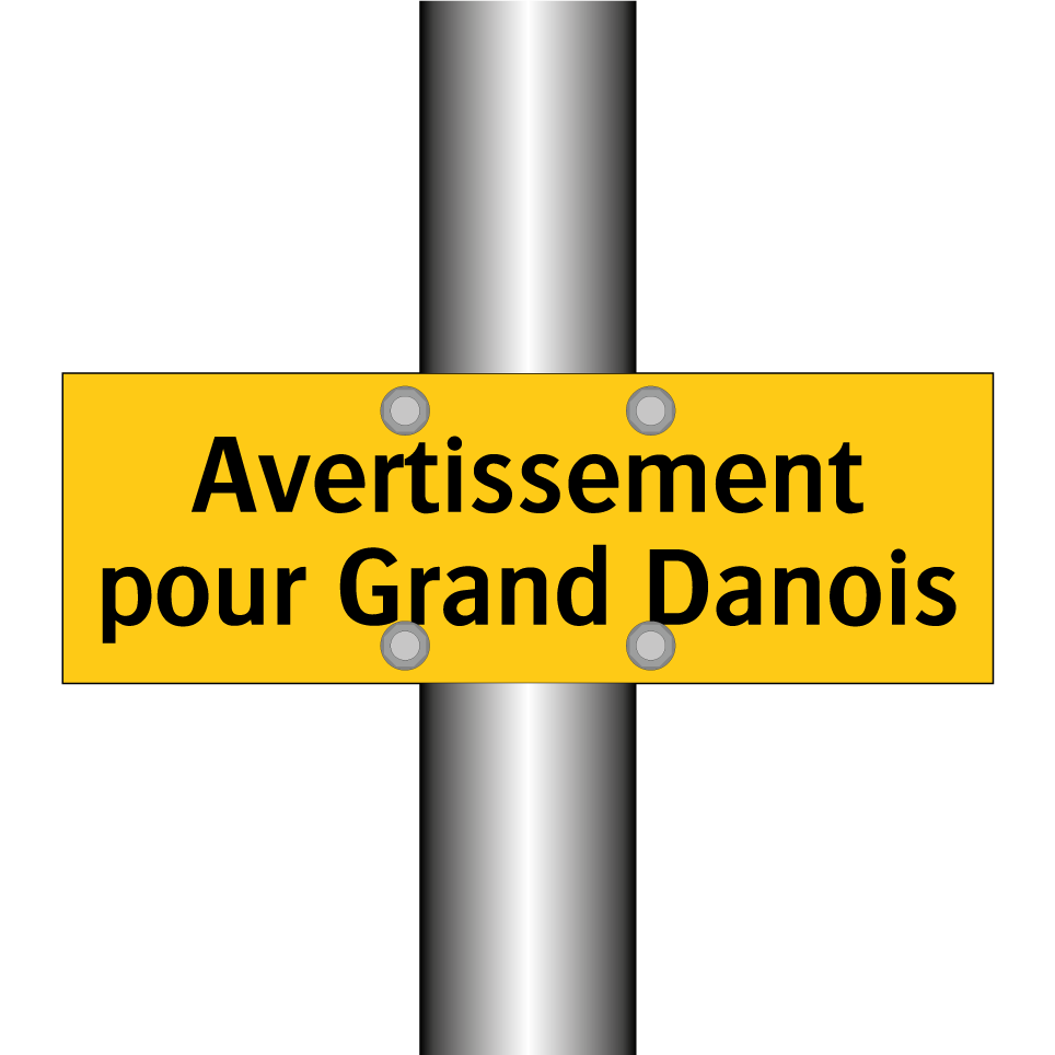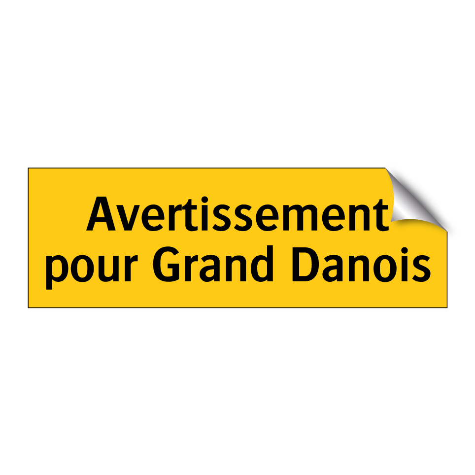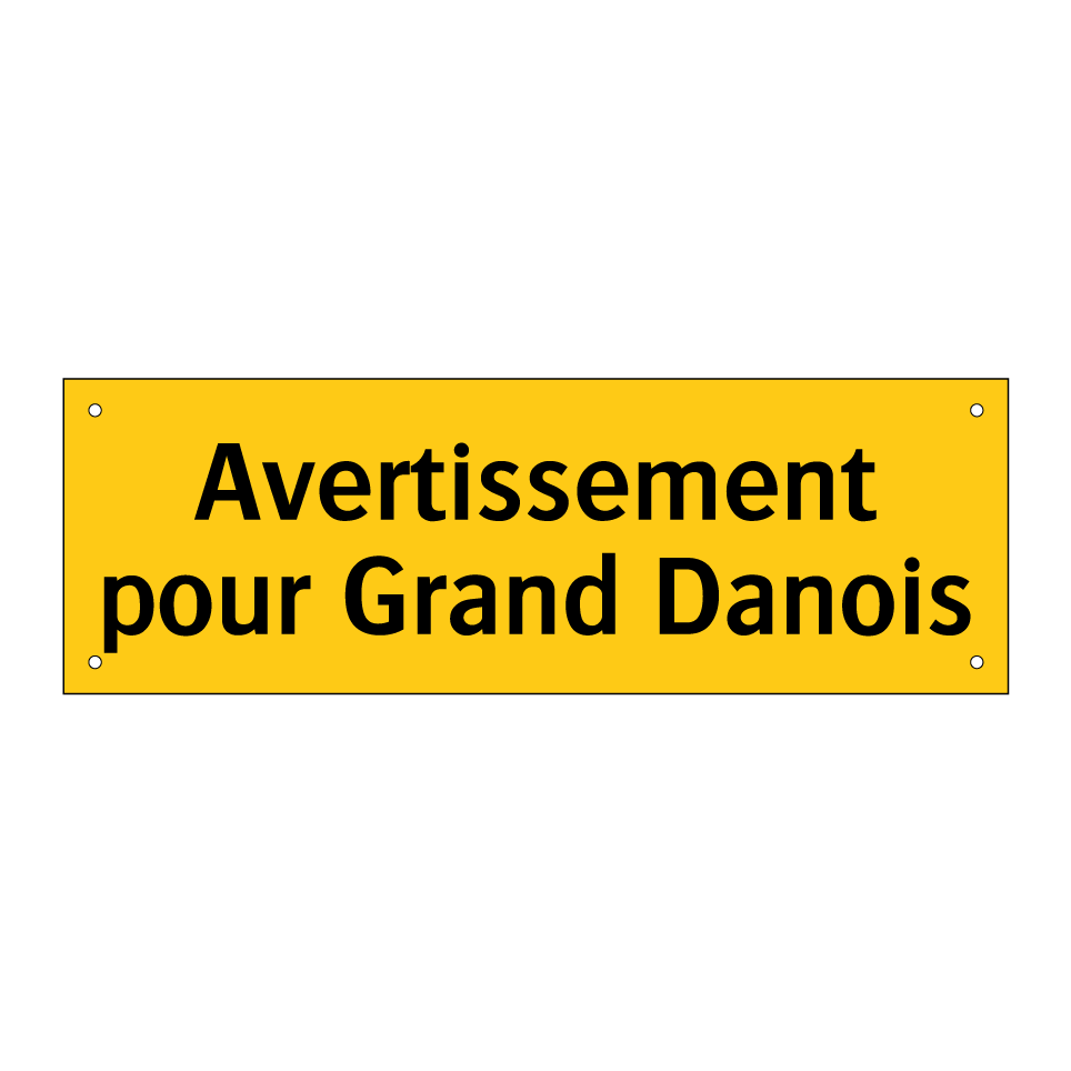 Panneau d'avertissement avec le texte : "Avertissement pour Grand Danois"