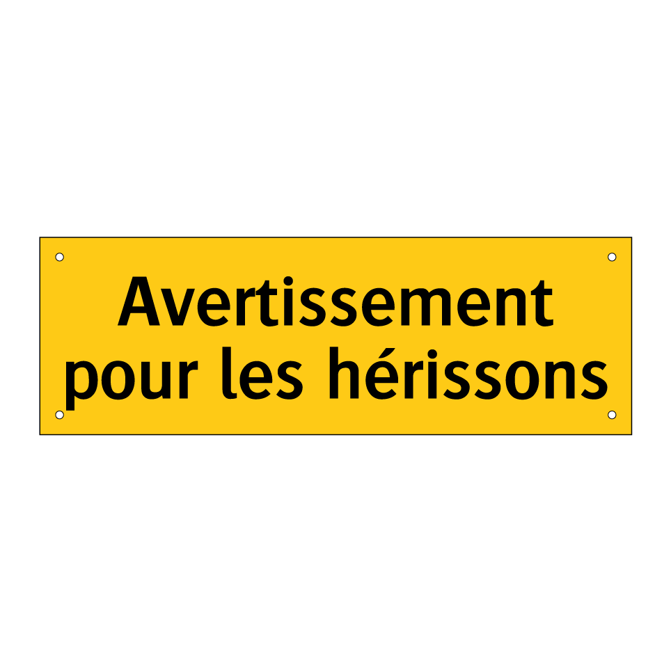 Panneau d'avertissement avec le texte : "Avertissement pour les hérissons"