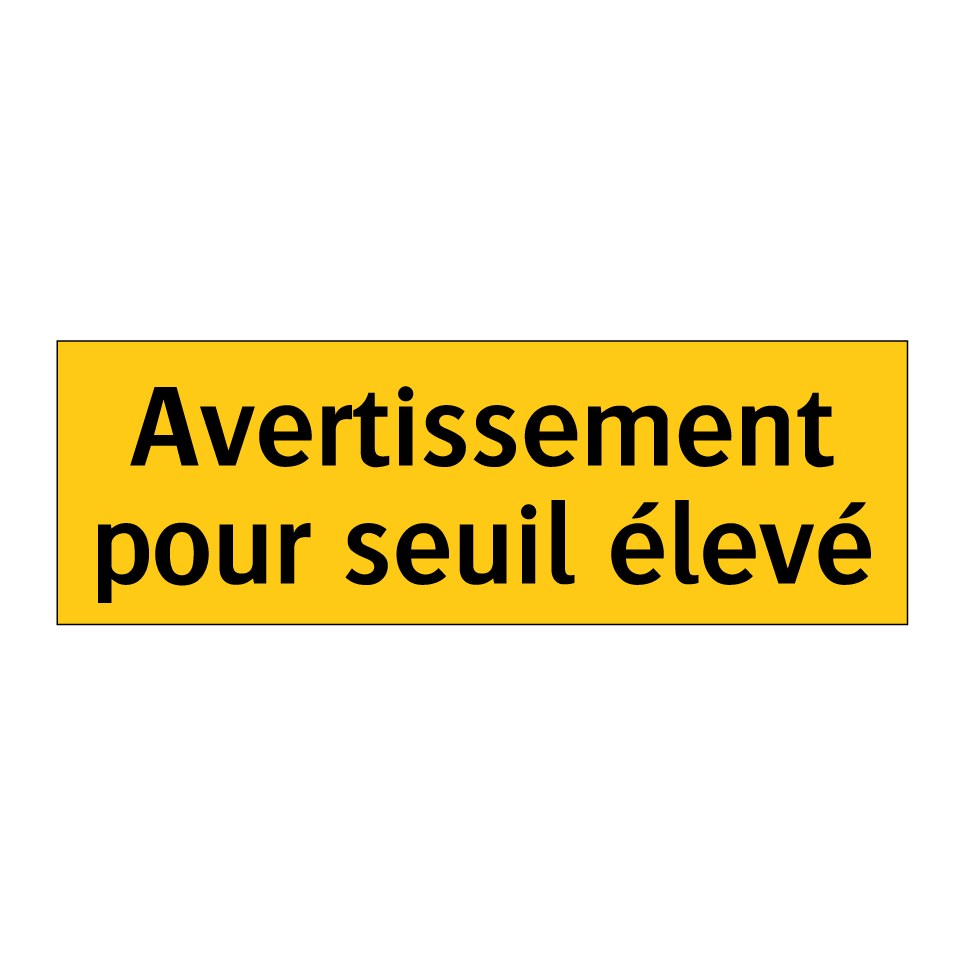 Panneau d'avertissement avec le texte : "Avertissement pour seuil élevé"