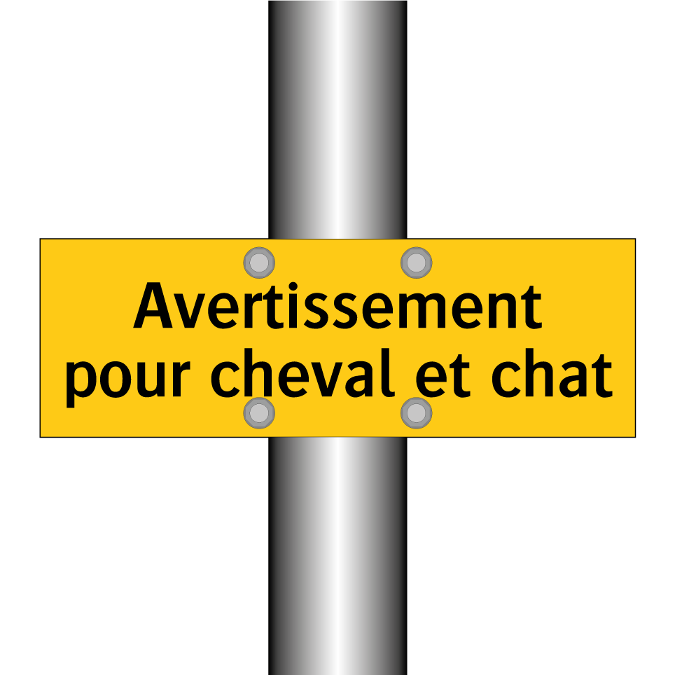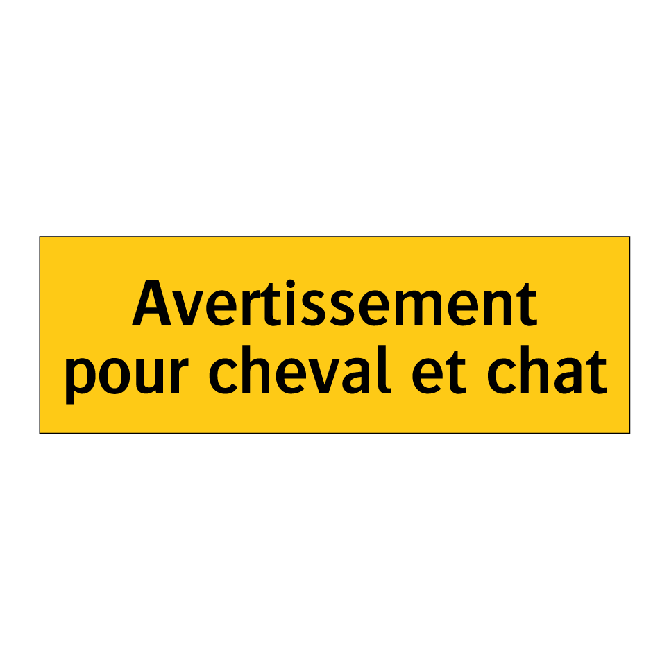 Panneau d'avertissement avec le texte : "Avertissement pour cheval et chat"