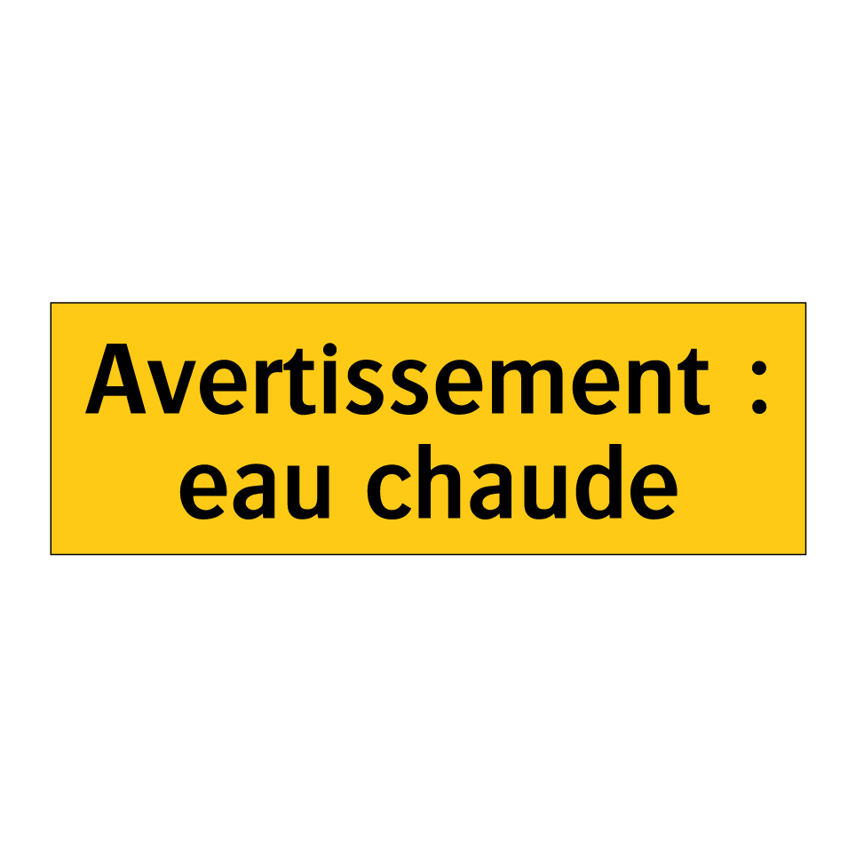 Panneau d'avertissement avec le texte : "Avertissement : eau chaude"