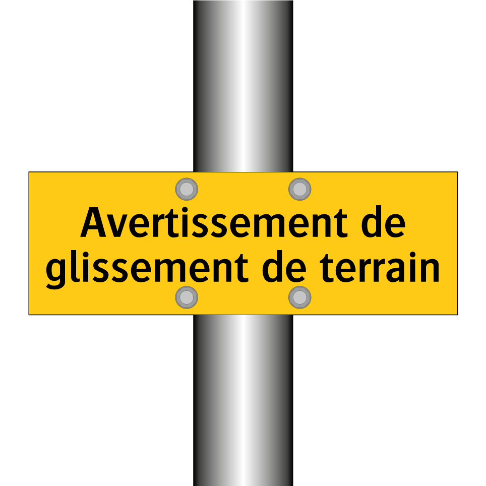Panneau d'avertissement avec le texte : "Avertissement de glissement de terrain"