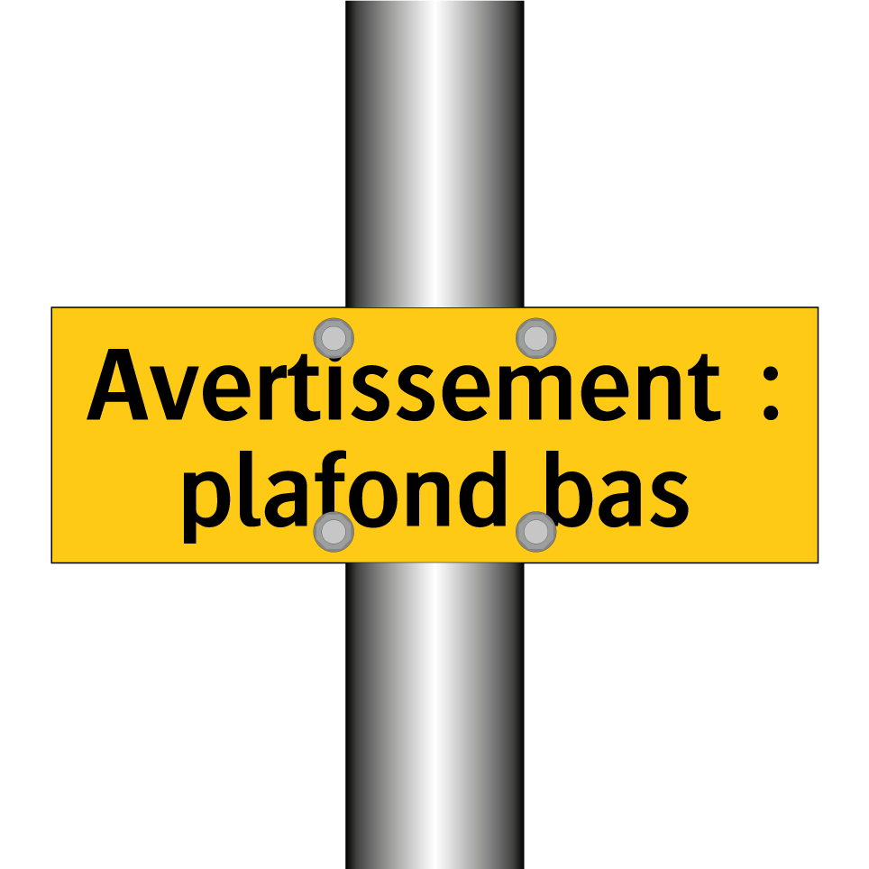Panneau d'avertissement avec le texte : "Avertissement : plafond bas"