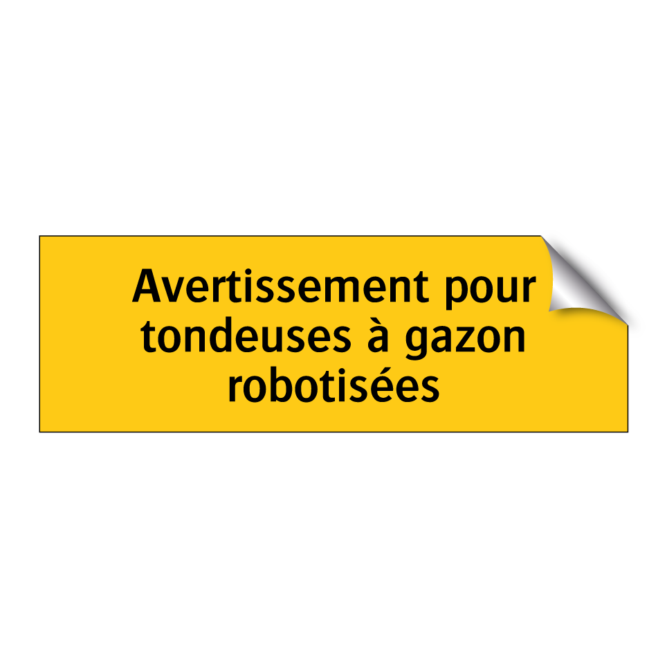 Panneau d'avertissement avec le texte : "Avertissement pour tondeuses à gazon robotisées"