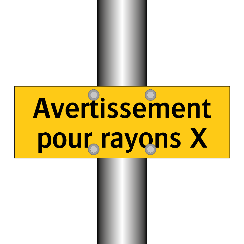Panneau d'avertissement avec le texte : "Avertissement pour rayons X"