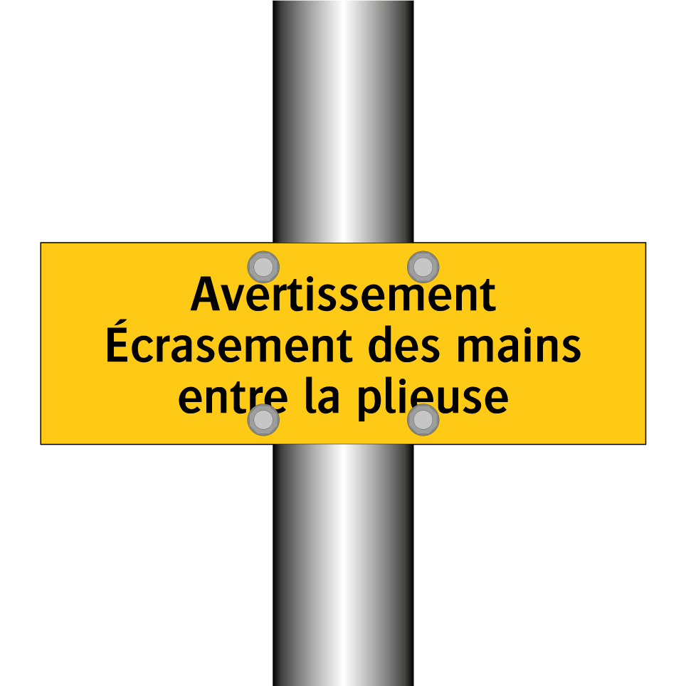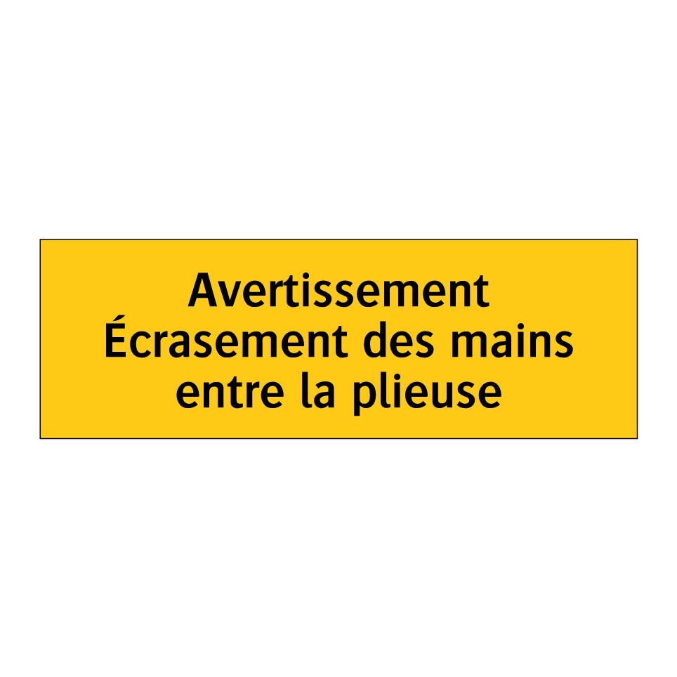 Panneau d'avertissement avec le texte : "Avertissement Écrasement des mains entre la plieuse"
