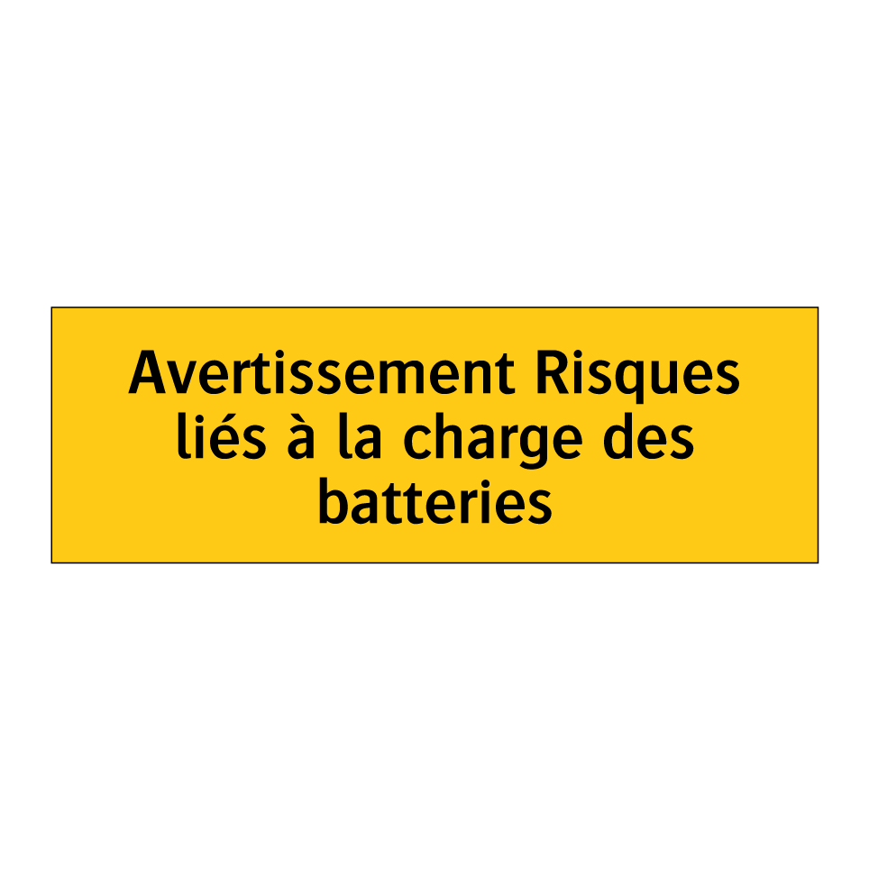 Panneau d'avertissement avec le texte : "Avertissement Risques liés à la charge des batteries"