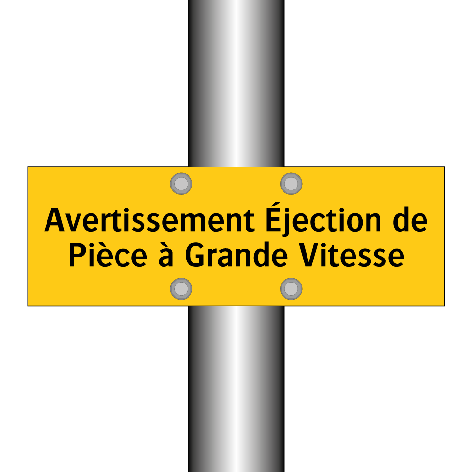 Panneau d'avertissement avec le texte : "Avertissement Éjection de Pièce à Grande Vitesse"