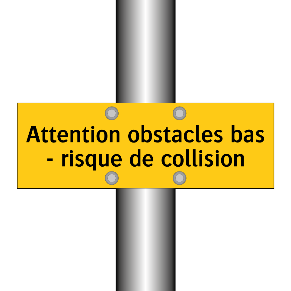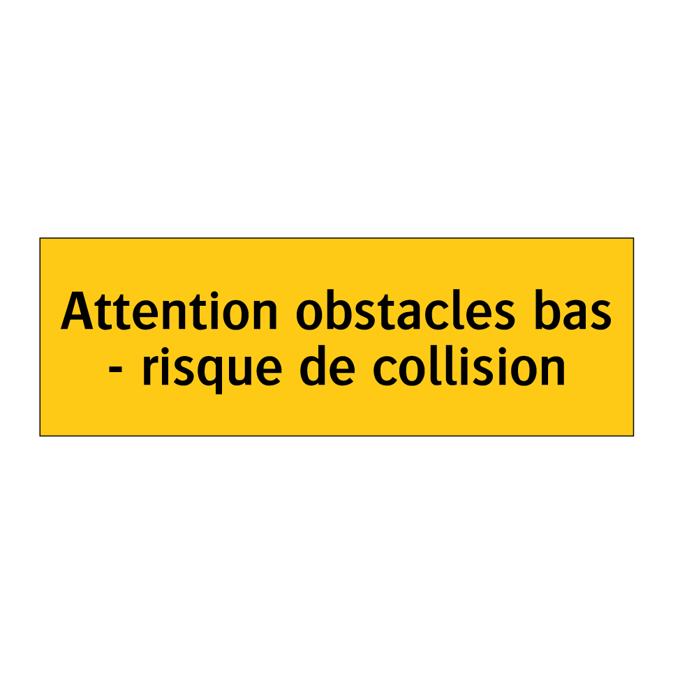 Panneau d'avertissement avec le texte : "Attention obstacles bas - risque de collision"