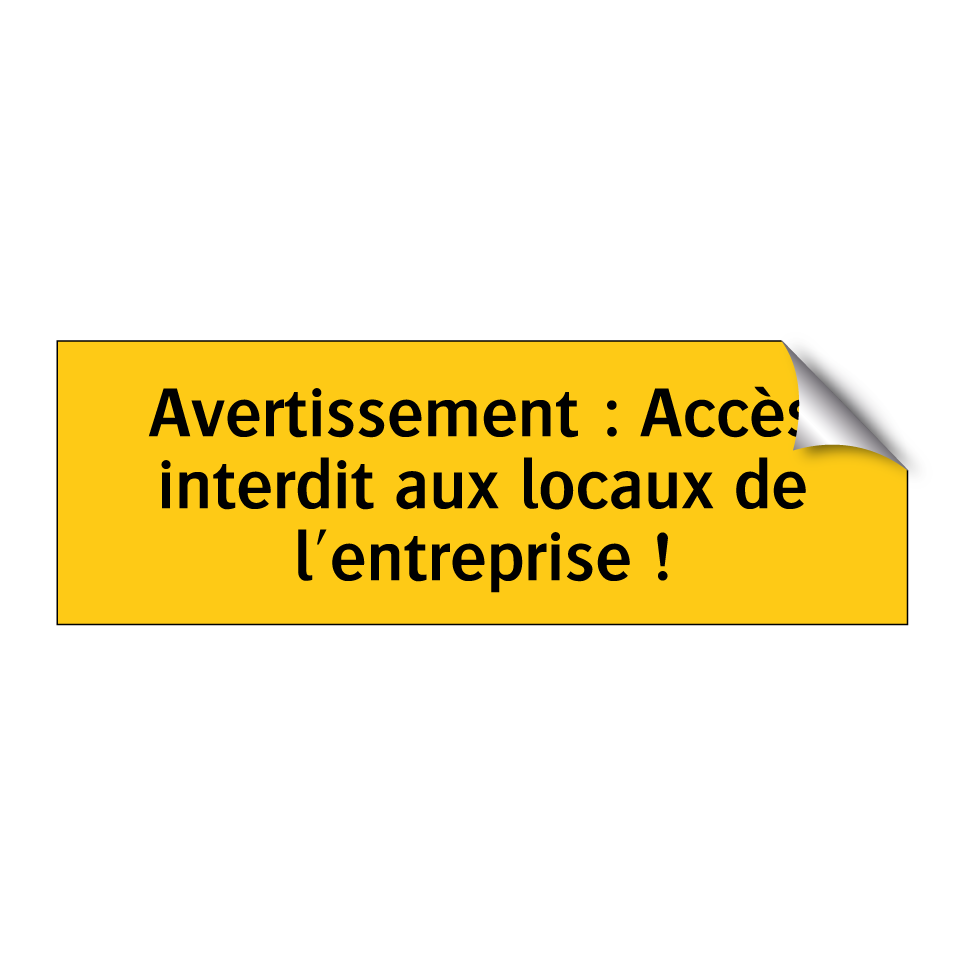 Panneau d'avertissement avec le texte : "Avertissement : Accès interdit aux locaux de l'entreprise !"