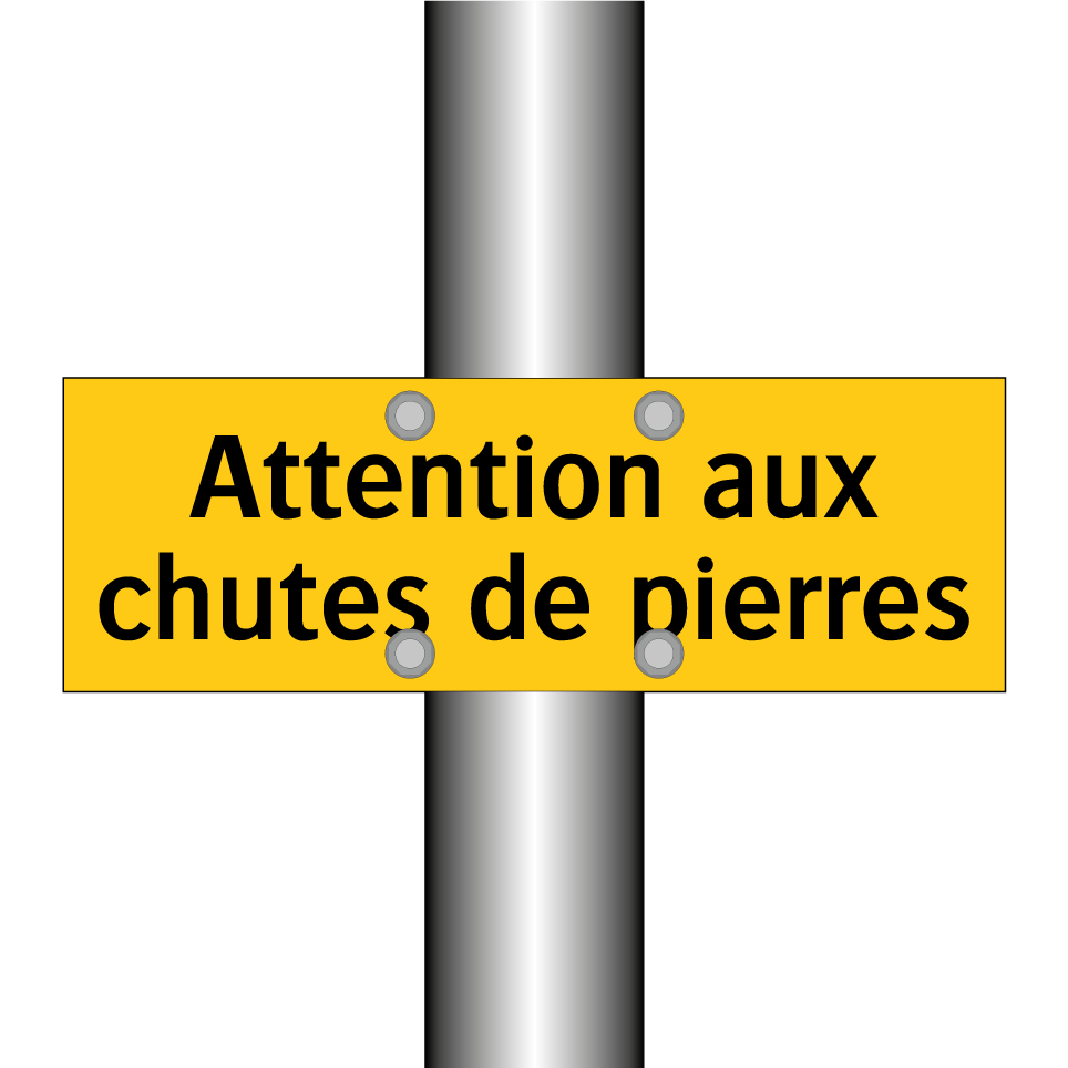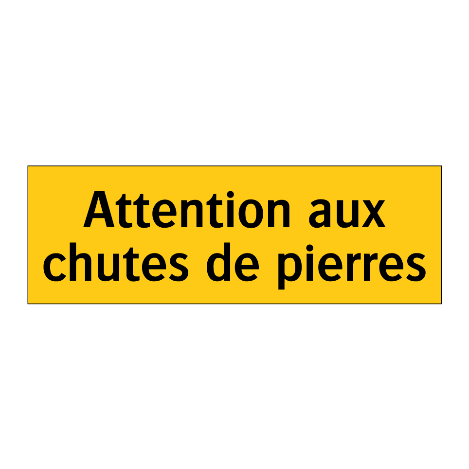 Panneau d'avertissement avec le texte : "Attention aux chutes de pierres"