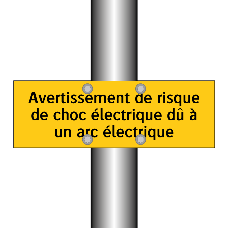Panneau d'avertissement avec le texte : "Avertissement de risque de choc électrique dû à un arc électrique"
