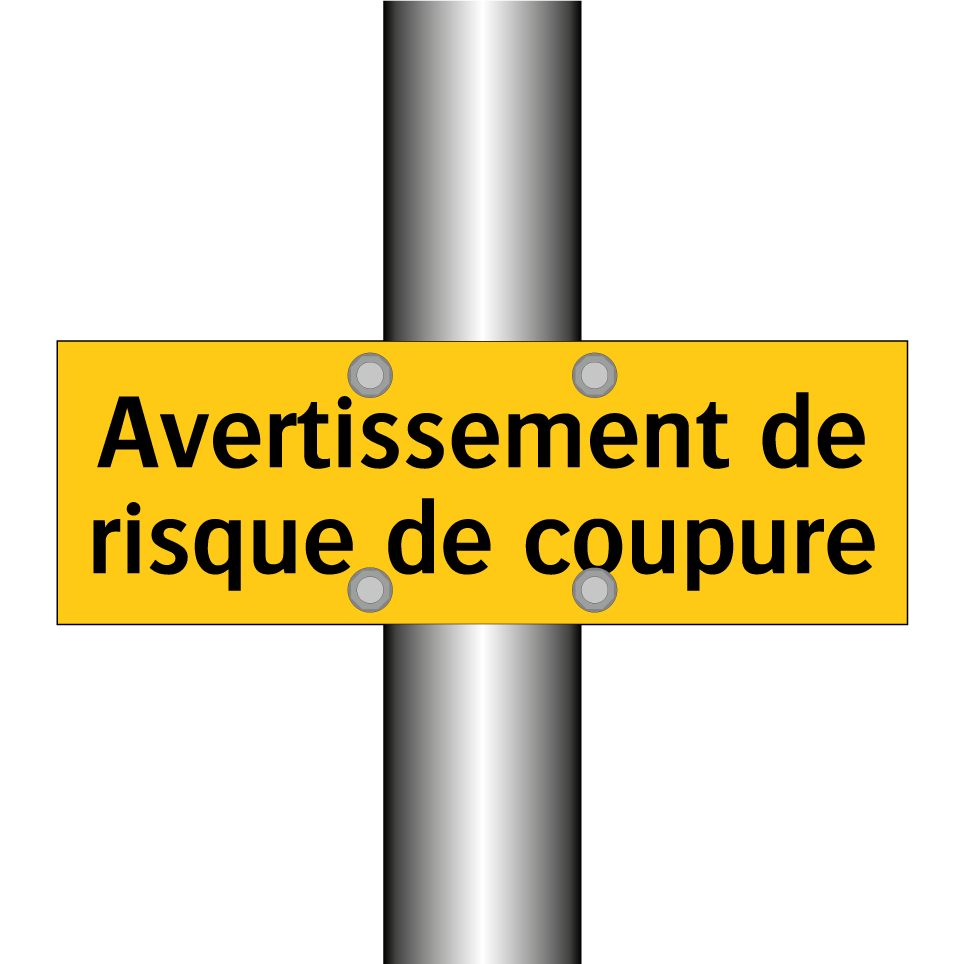 Panneau d'avertissement avec le texte : "Avertissement de risque de coupure"