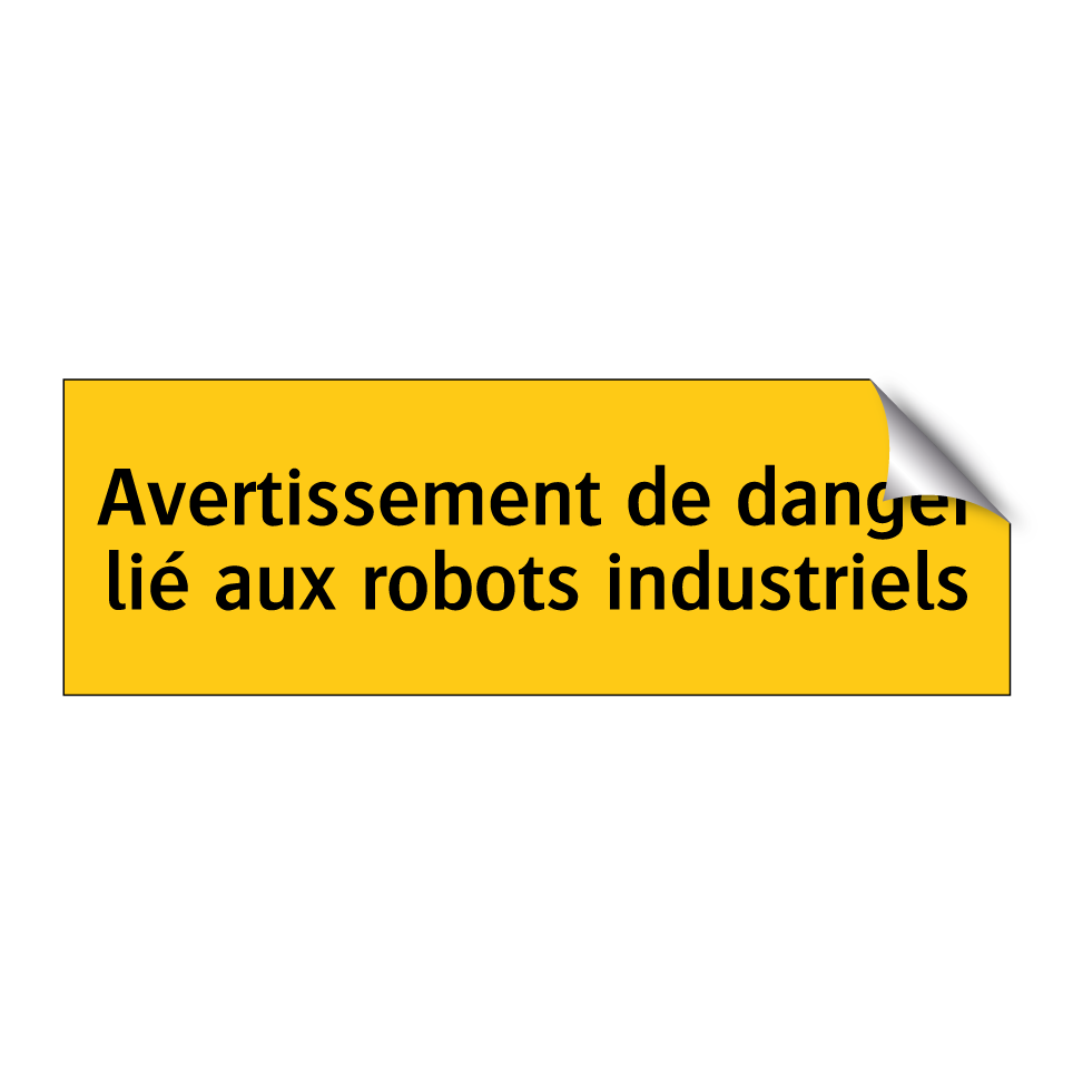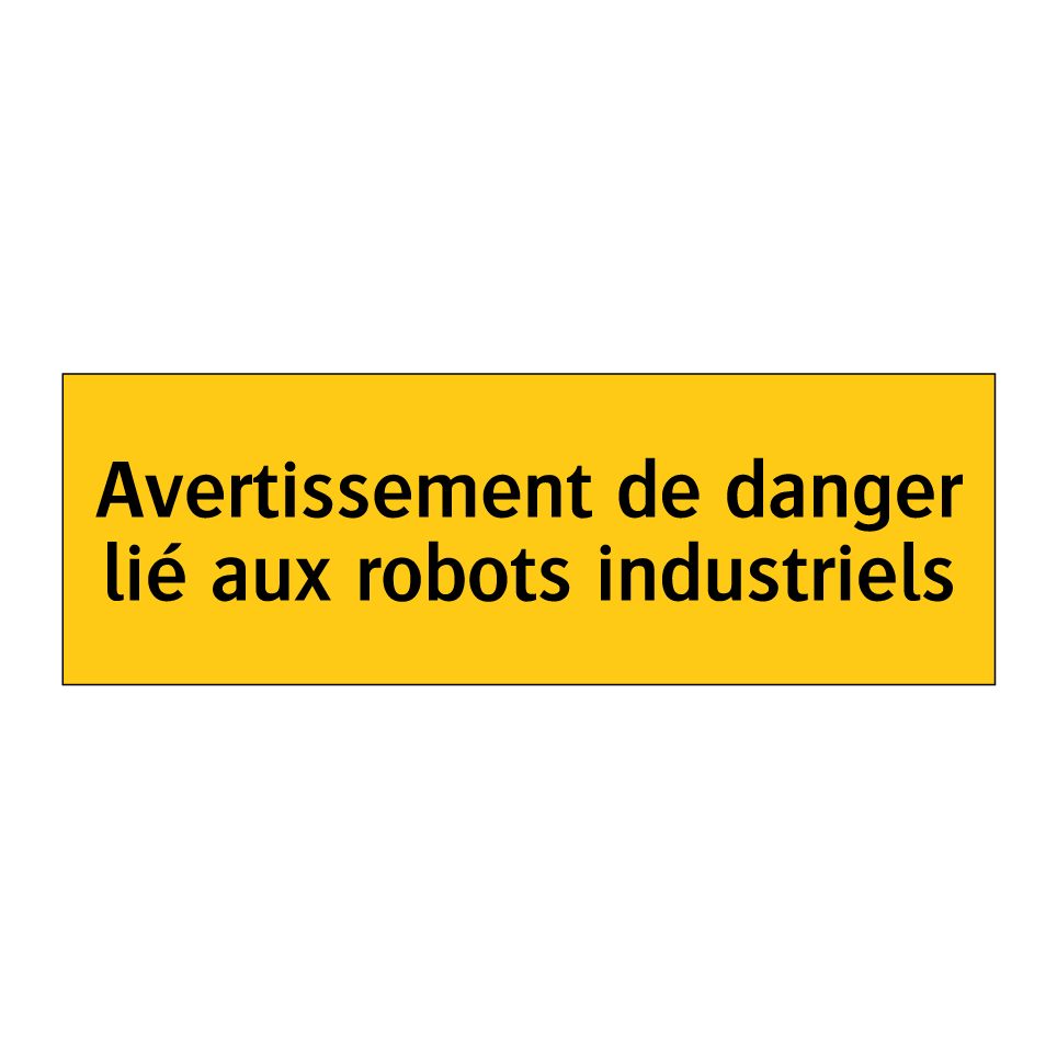 Panneau d'avertissement avec le texte : "Avertissement de danger lié aux robots industriels"
