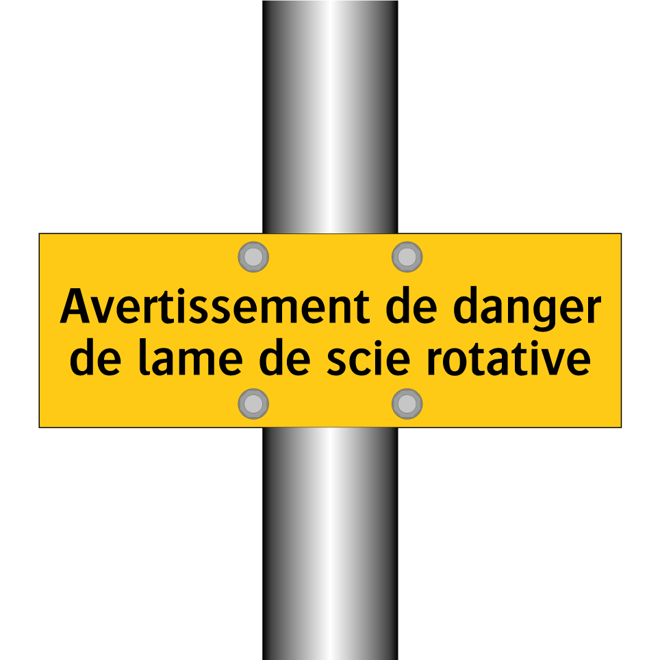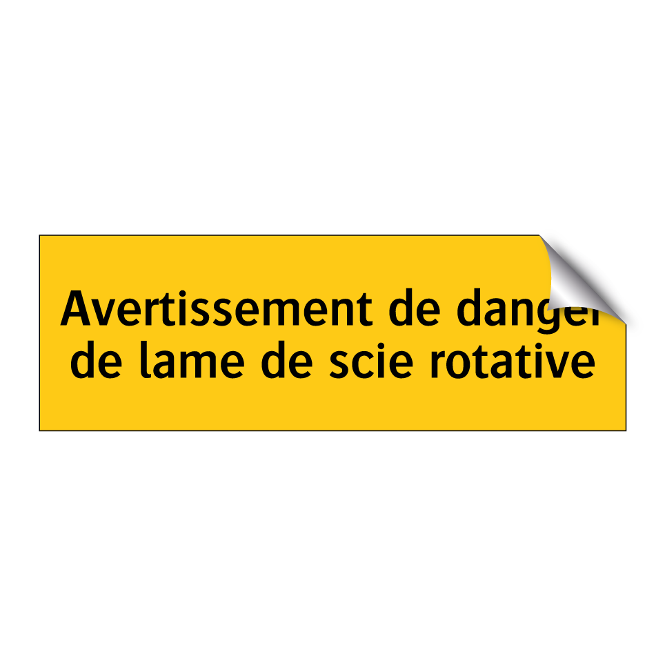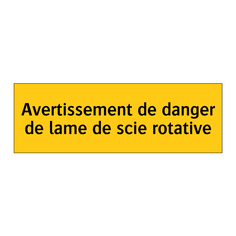 Panneau d'avertissement avec le texte : "Avertissement de danger de lame de scie rotative"