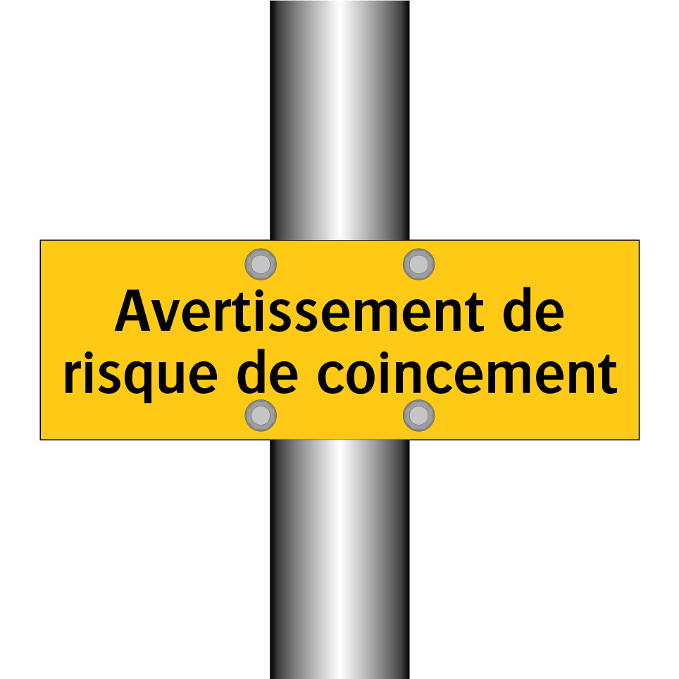 Panneau d'avertissement avec le texte : "Avertissement de risque de coincement"