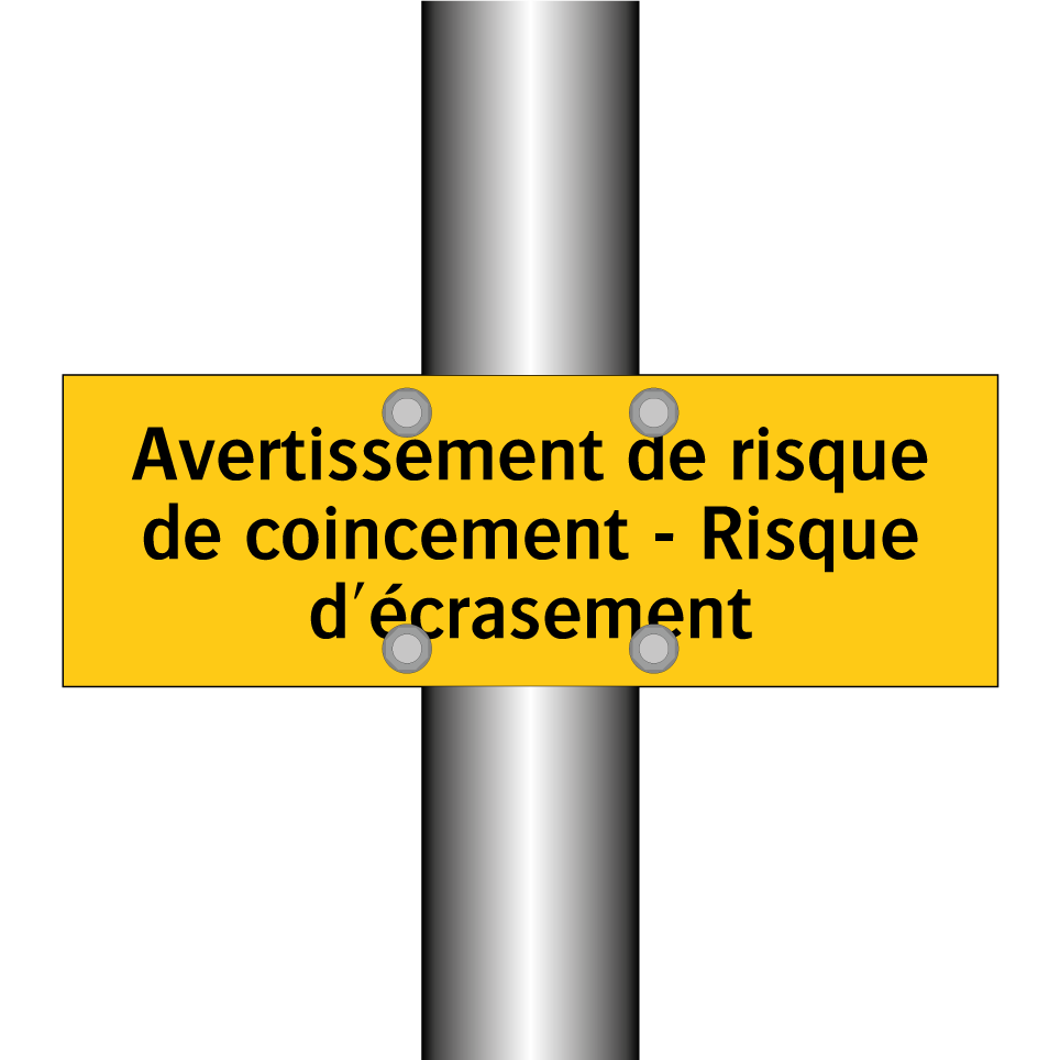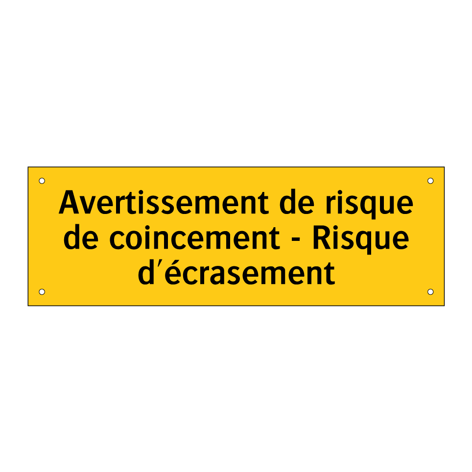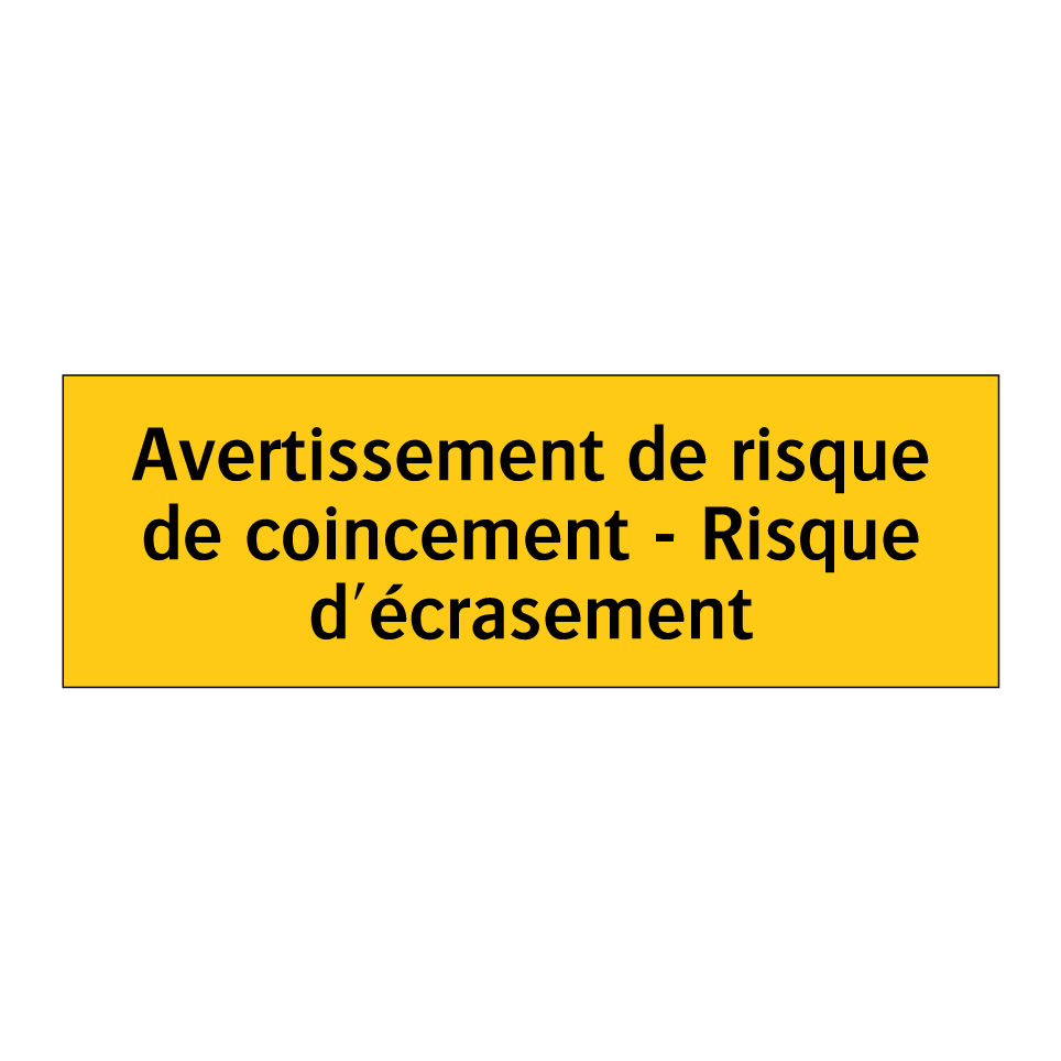 Panneau d'avertissement avec le texte : "Avertissement de risque de coincement - Risque d'écrasement"