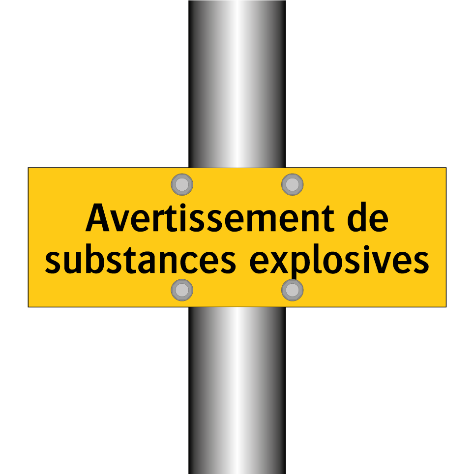 Panneau d'avertissement avec le texte : "Avertissement de substances explosives"