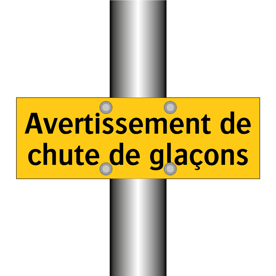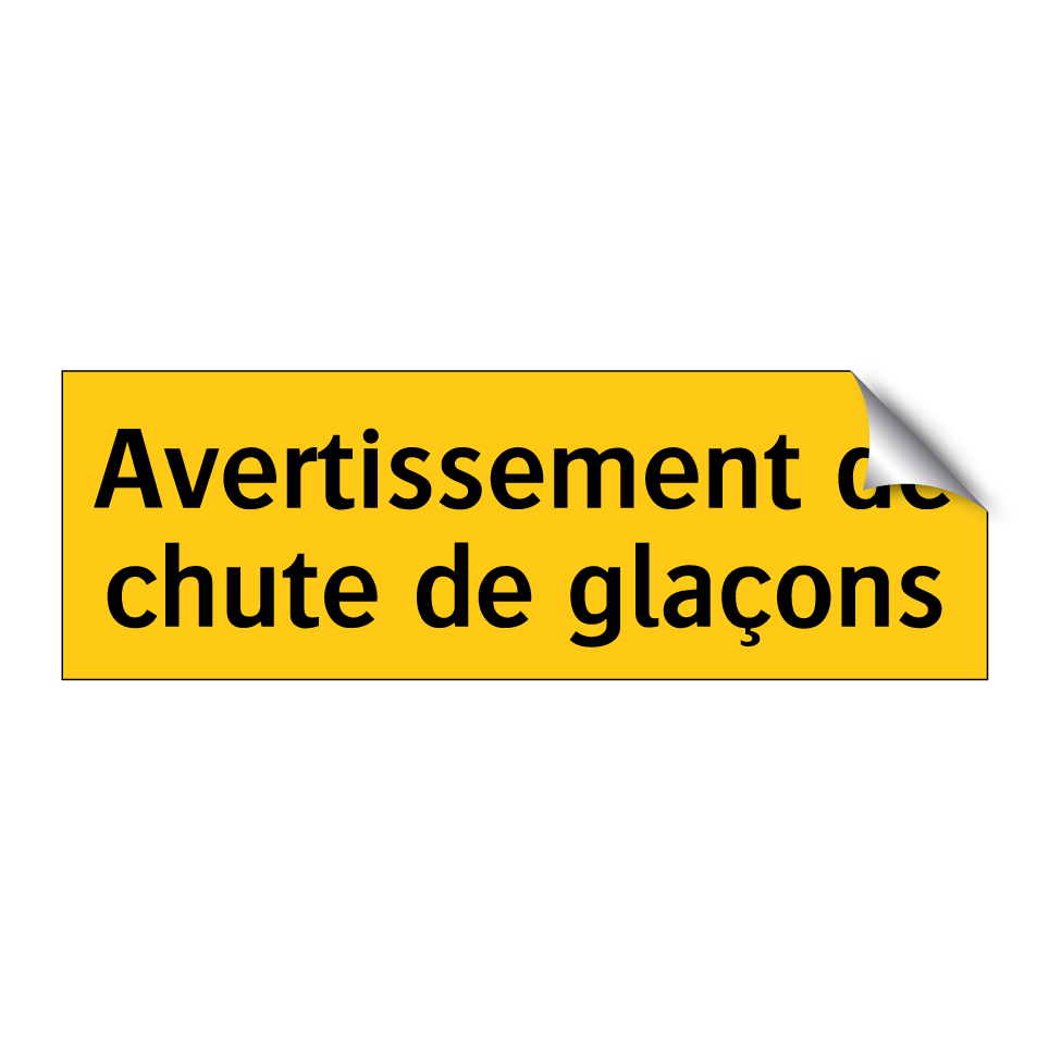 Panneau d'avertissement avec le texte : "Avertissement de chute de glaçons"